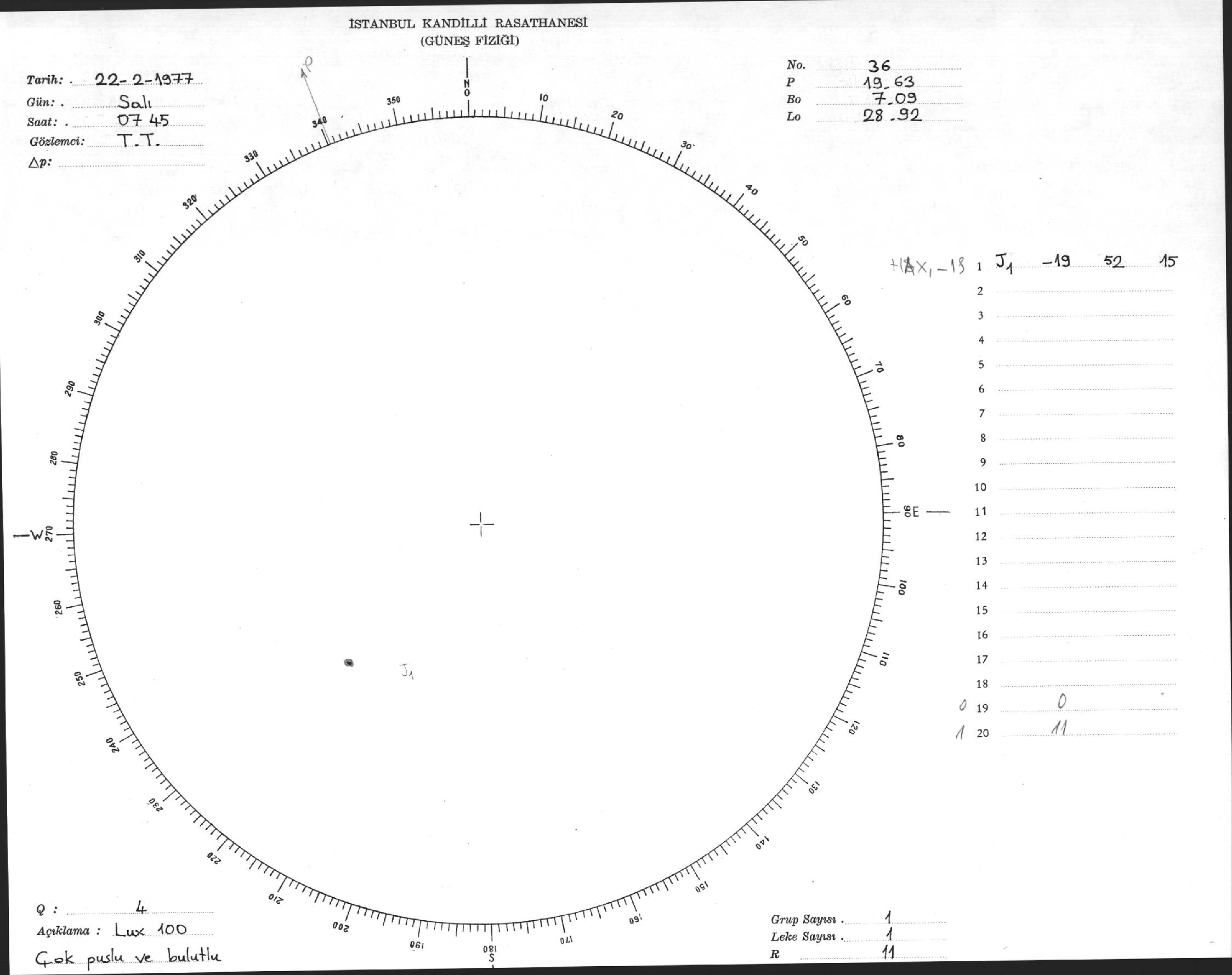 Güneş Lekesi Çizimi - 22.02.1977