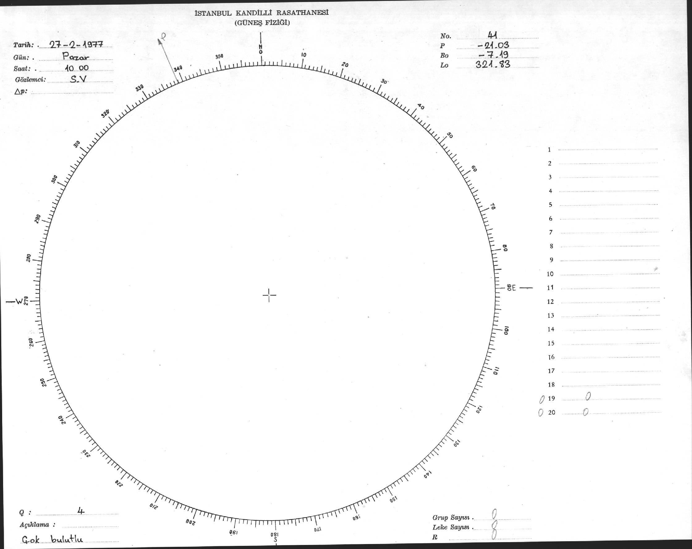 Güneş Lekesi Çizimi - 27.02.1977