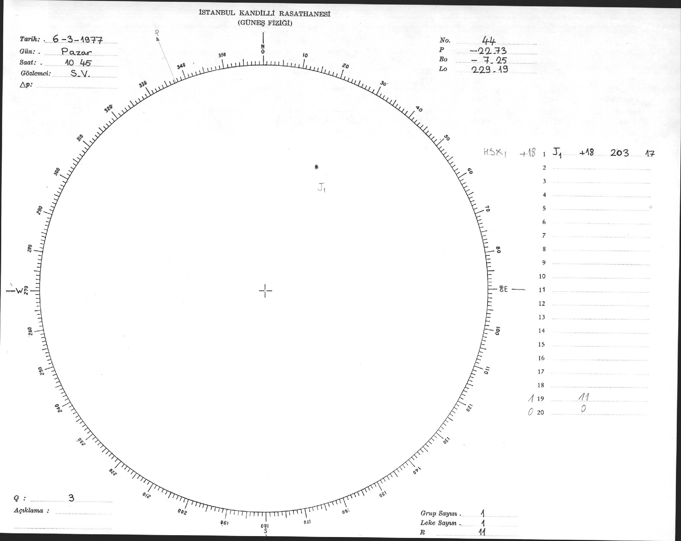 Güneş Lekesi Çizimi - 06.03.1977