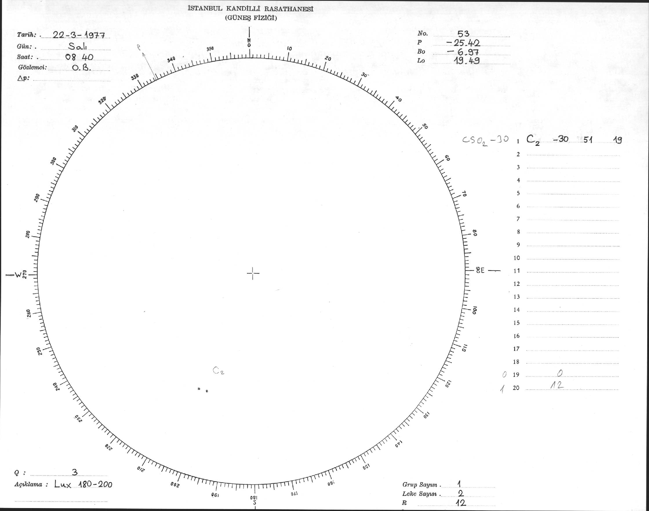 Güneş Lekesi Çizimi - 22.03.1977