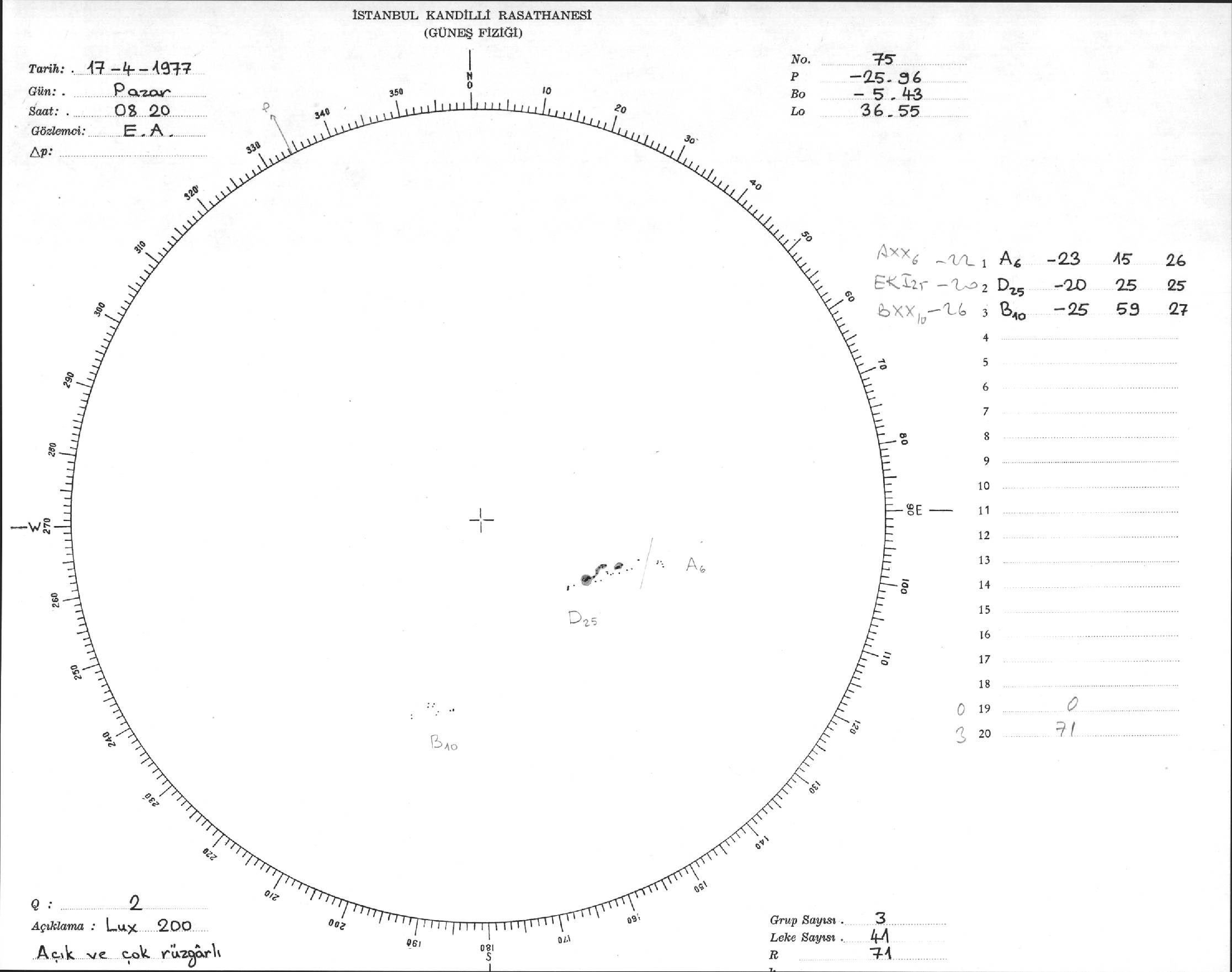 Güneş Lekesi Çizimi - 17.04.1977