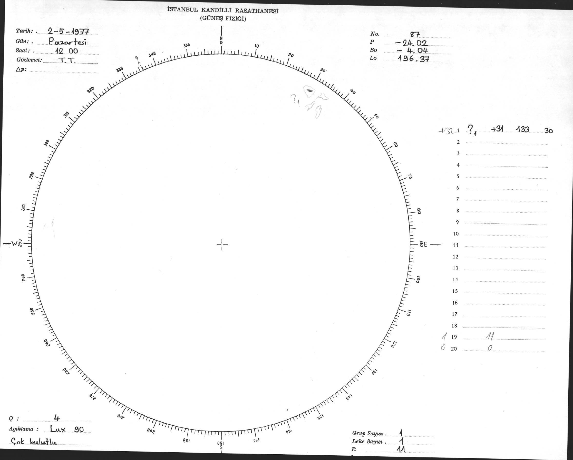 Güneş Lekesi Çizimi - 02.05.1977