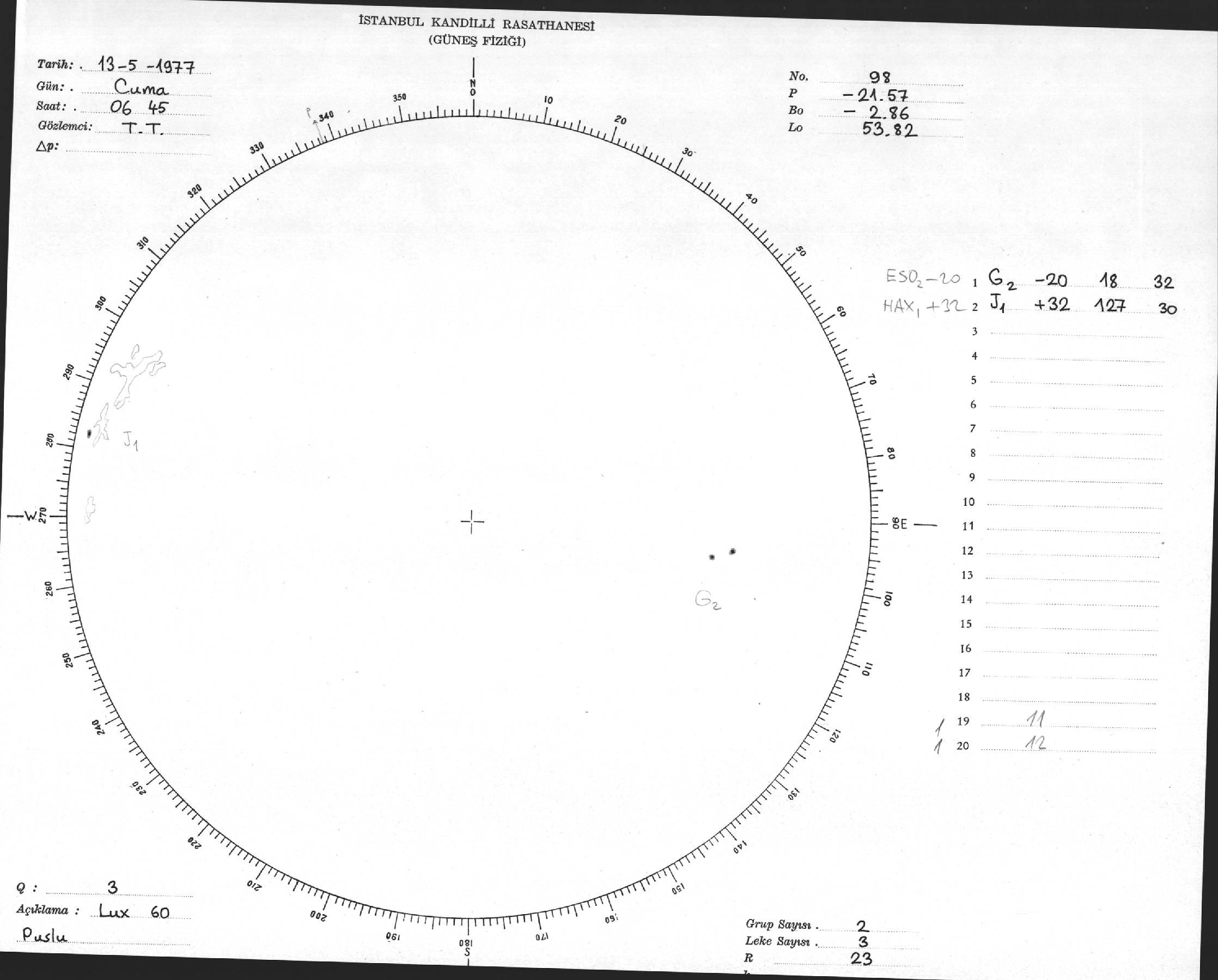 Güneş Lekesi Çizimi - 13.05.1977