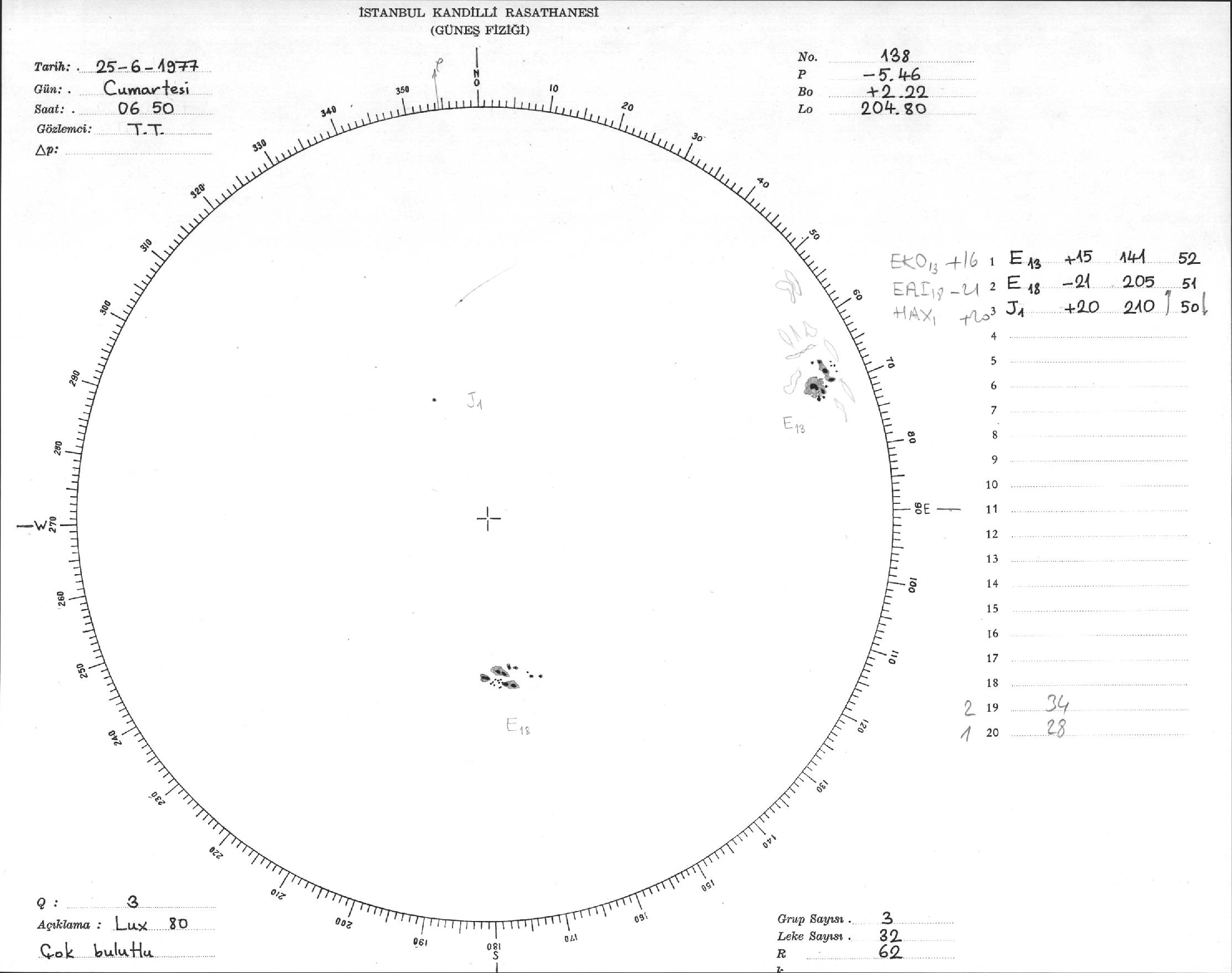 Güneş Lekesi Çizimi - 25.06.1977