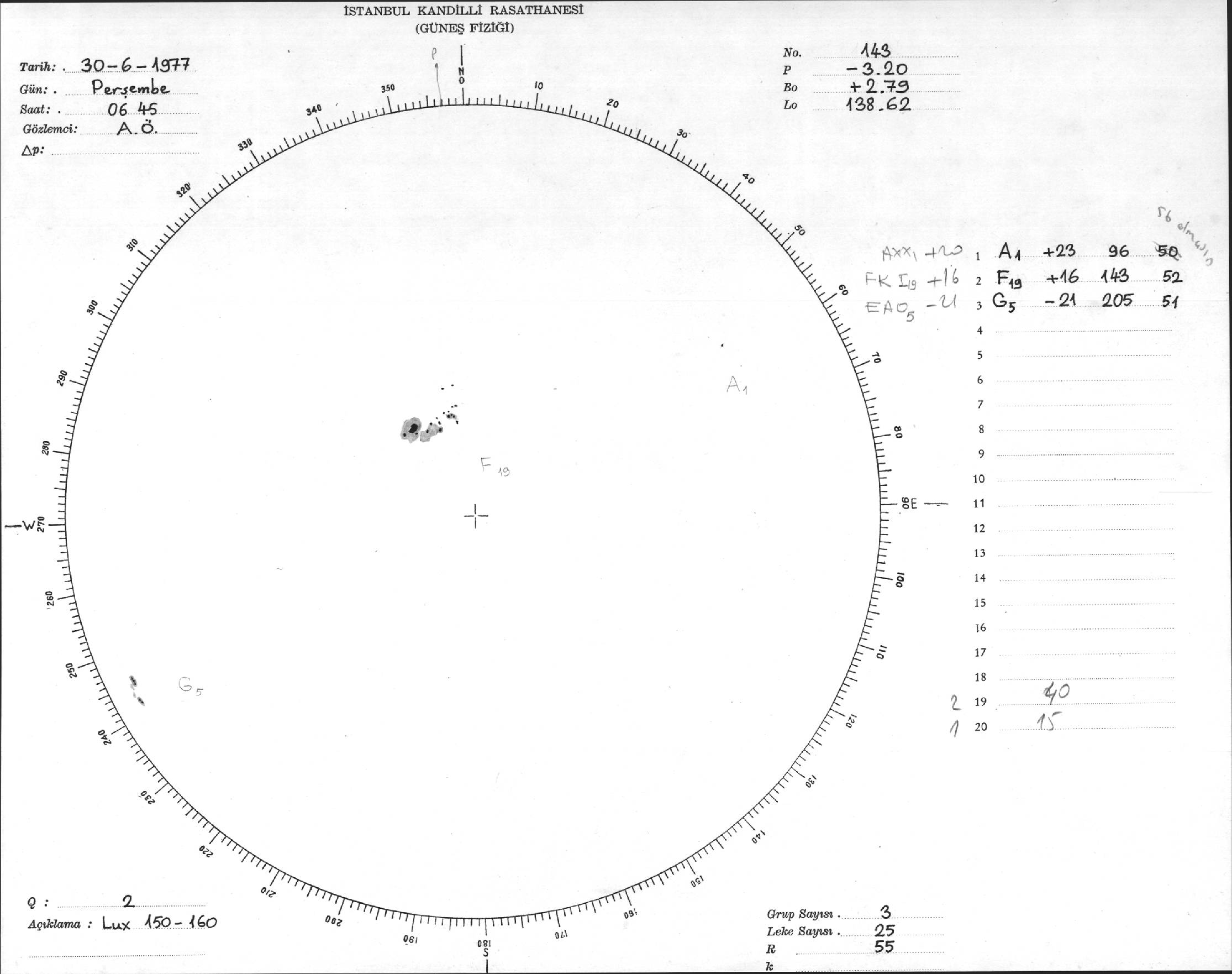 Güneş Lekesi Çizimi - 30.06.1977