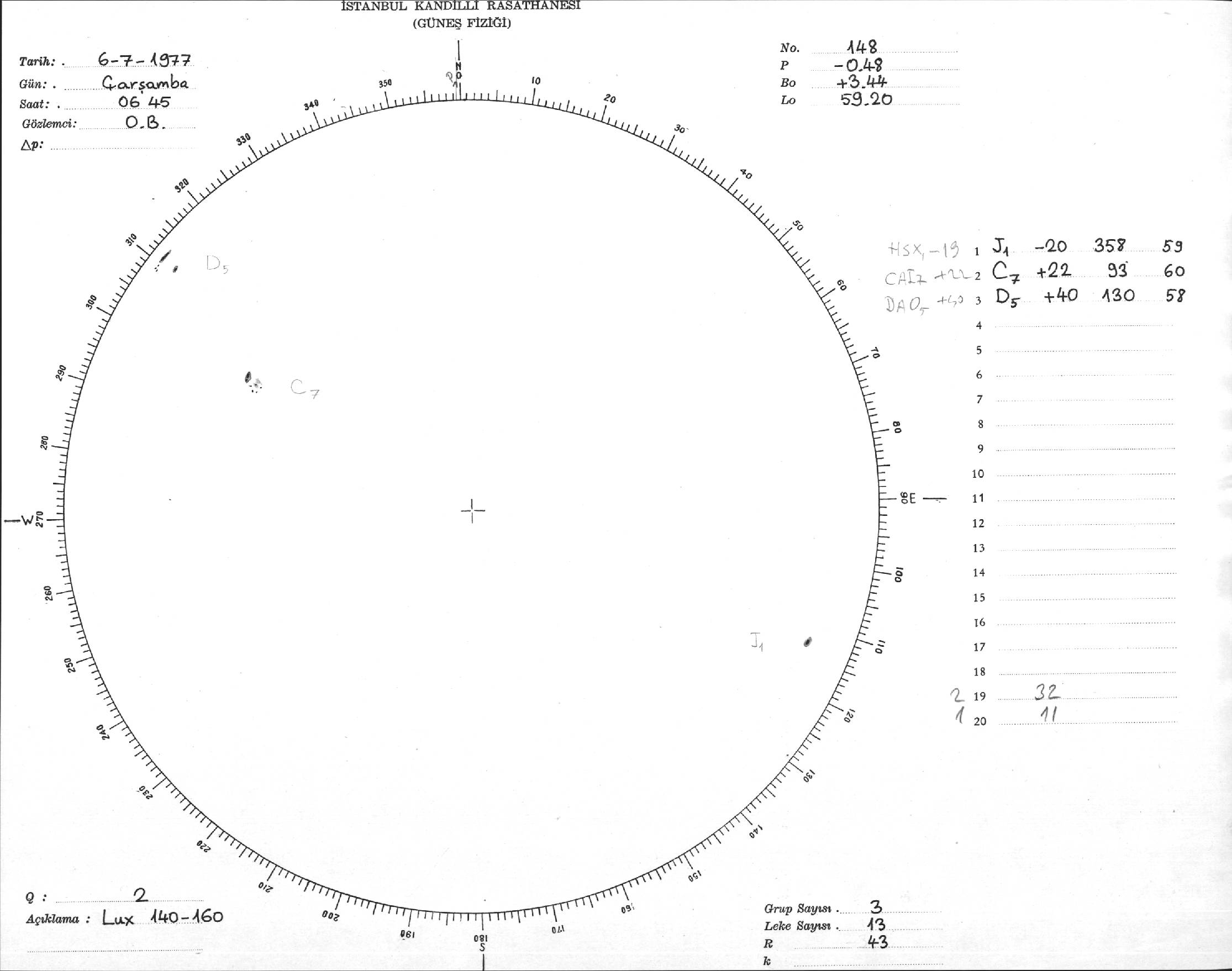 Güneş Lekesi Çizimi - 06.07.1977