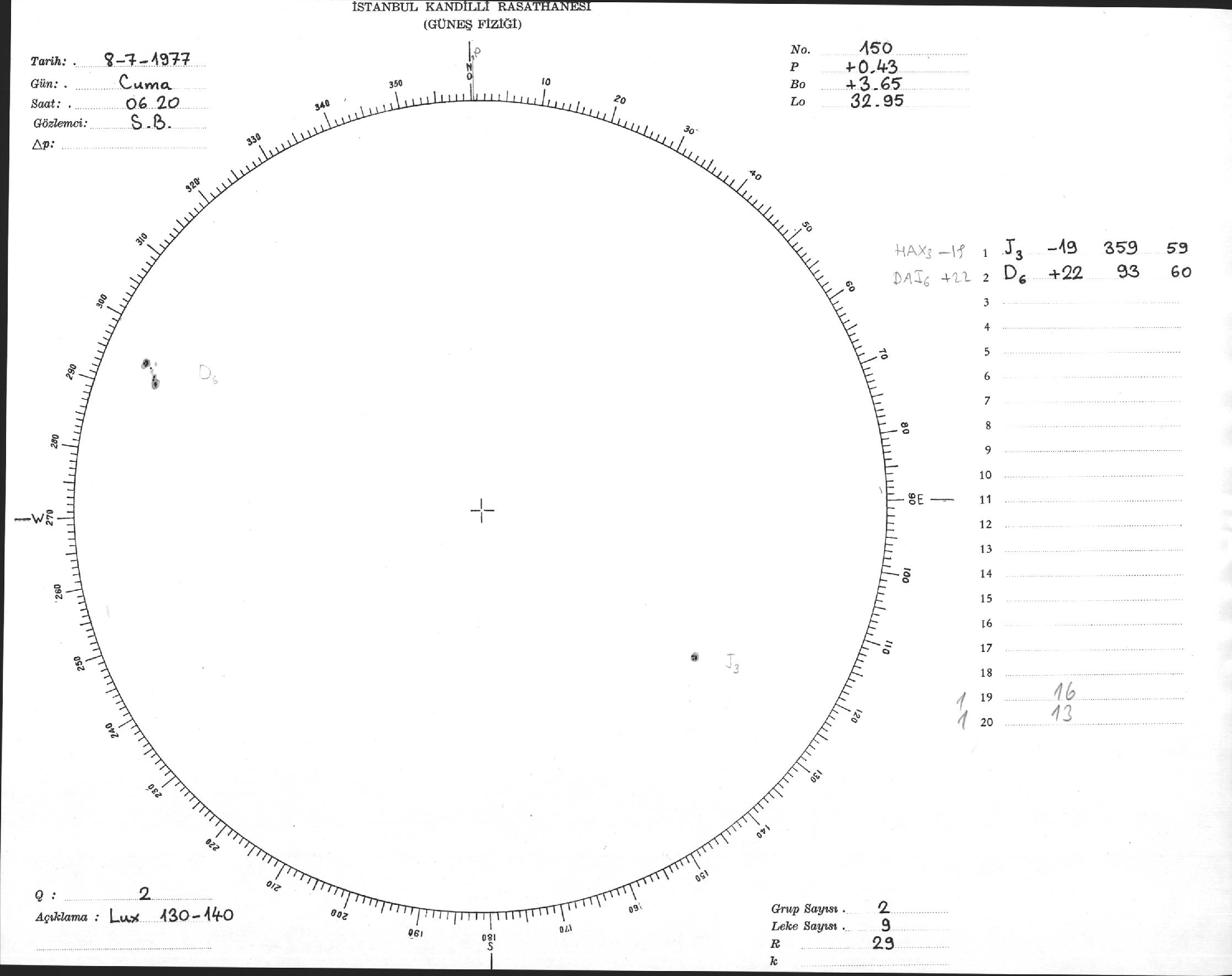Güneş Lekesi Çizimi - 08.07.1977