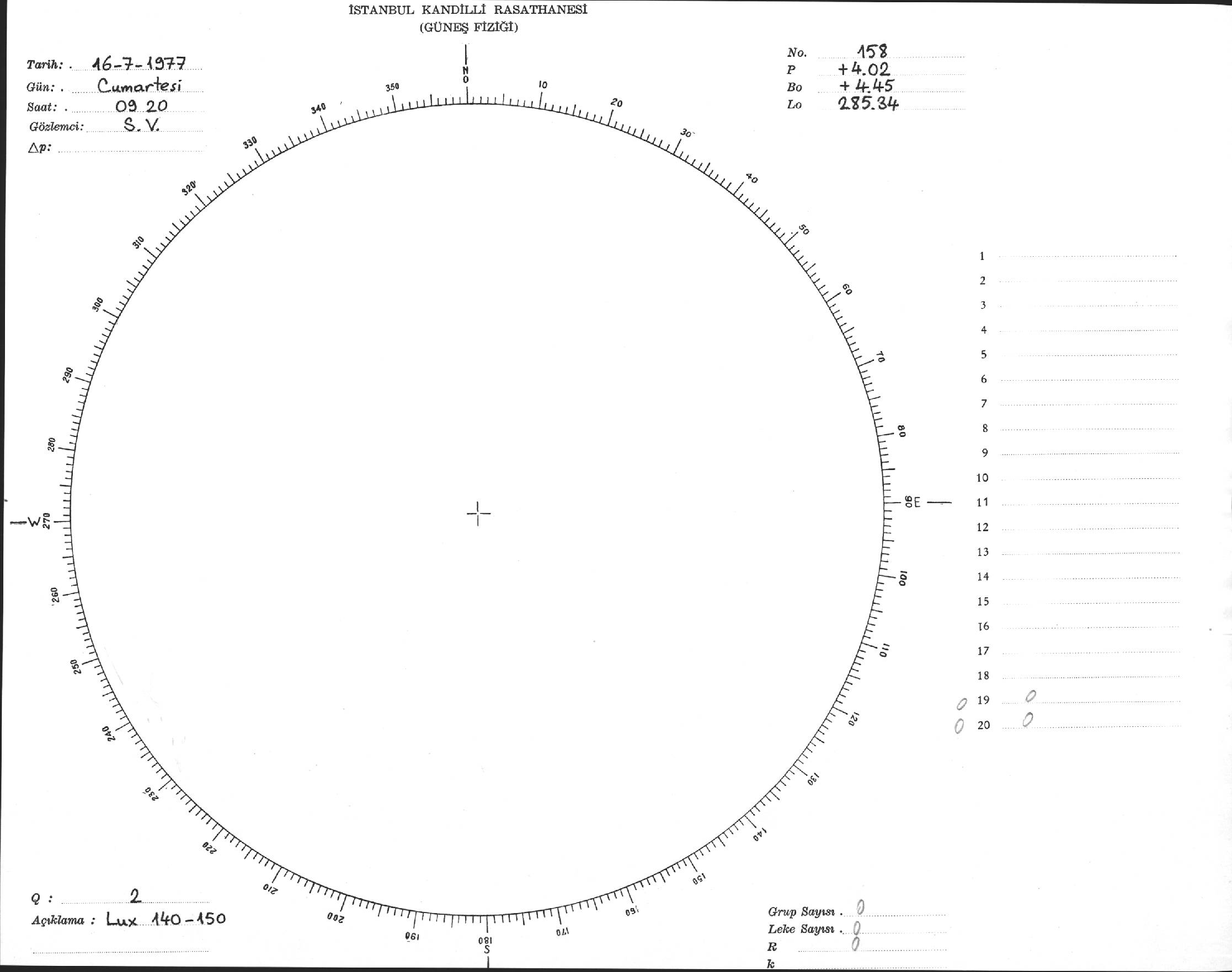 Güneş Lekesi Çizimi - 16.07.1977