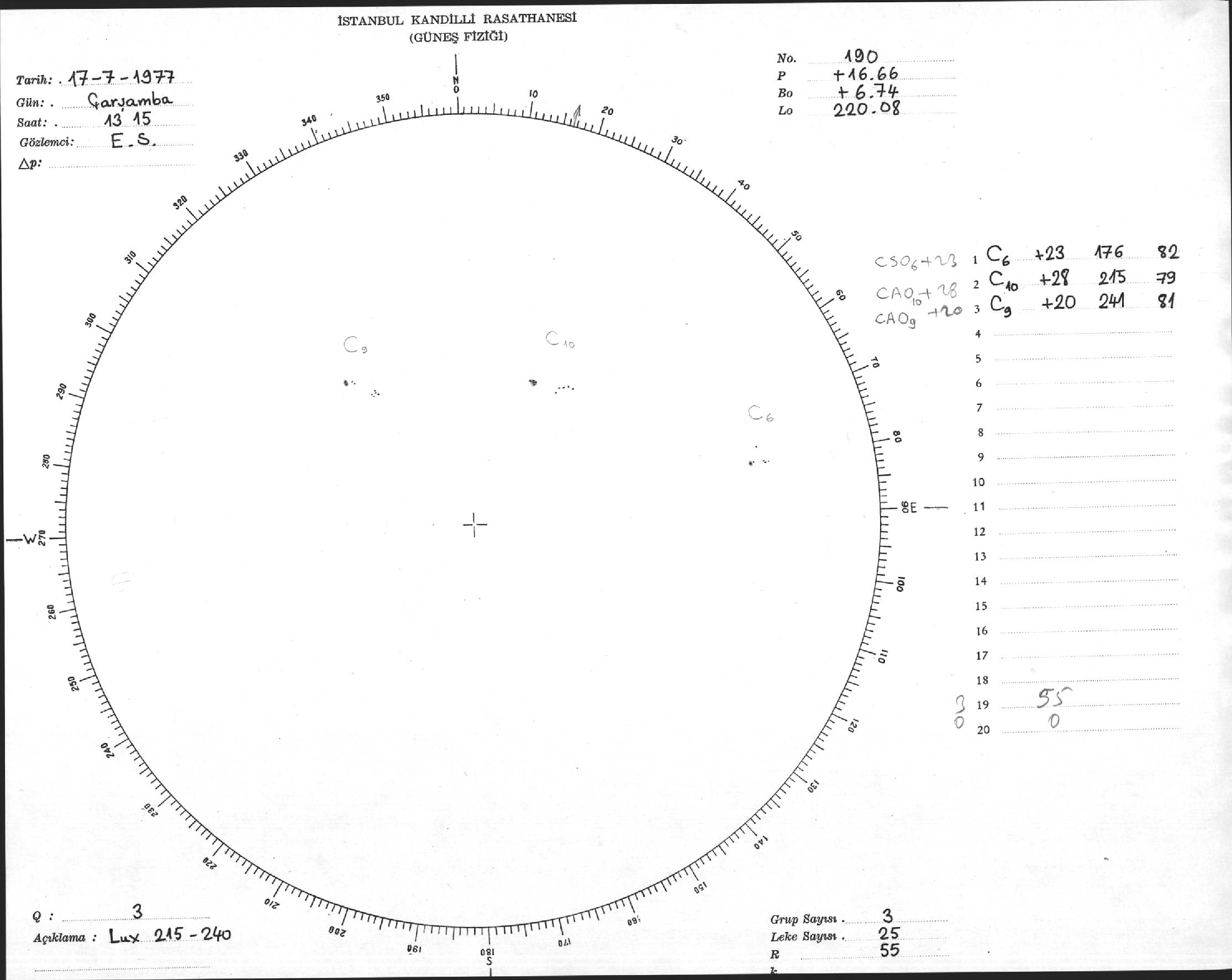 Güneş Lekesi Çizimi - 17.08.1977