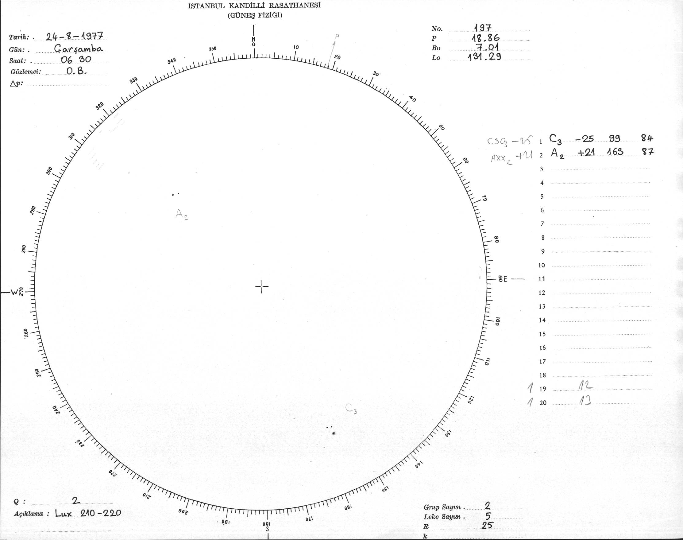 Güneş Lekesi Çizimi - 24.08.1977