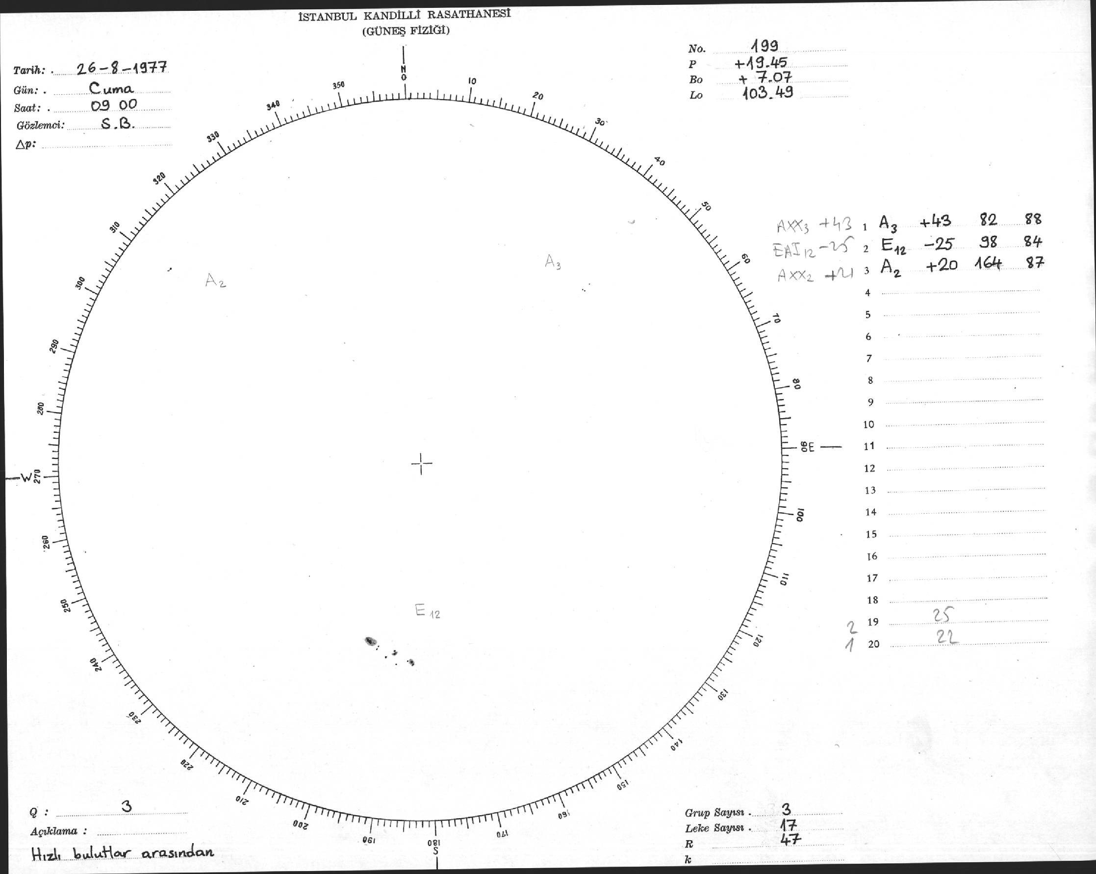 Güneş Lekesi Çizimi - 26.08.1977