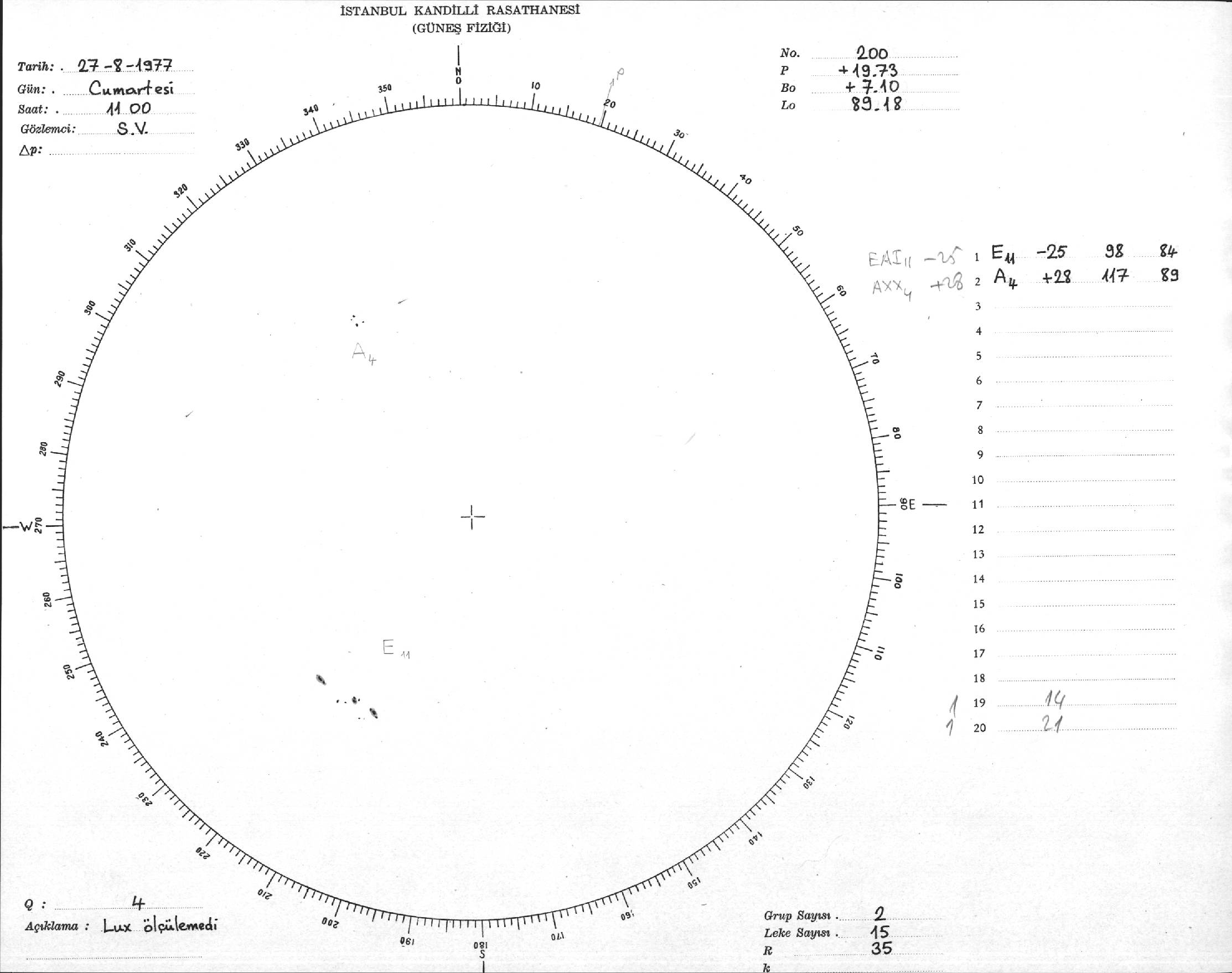Güneş Lekesi Çizimi - 27.08.1977