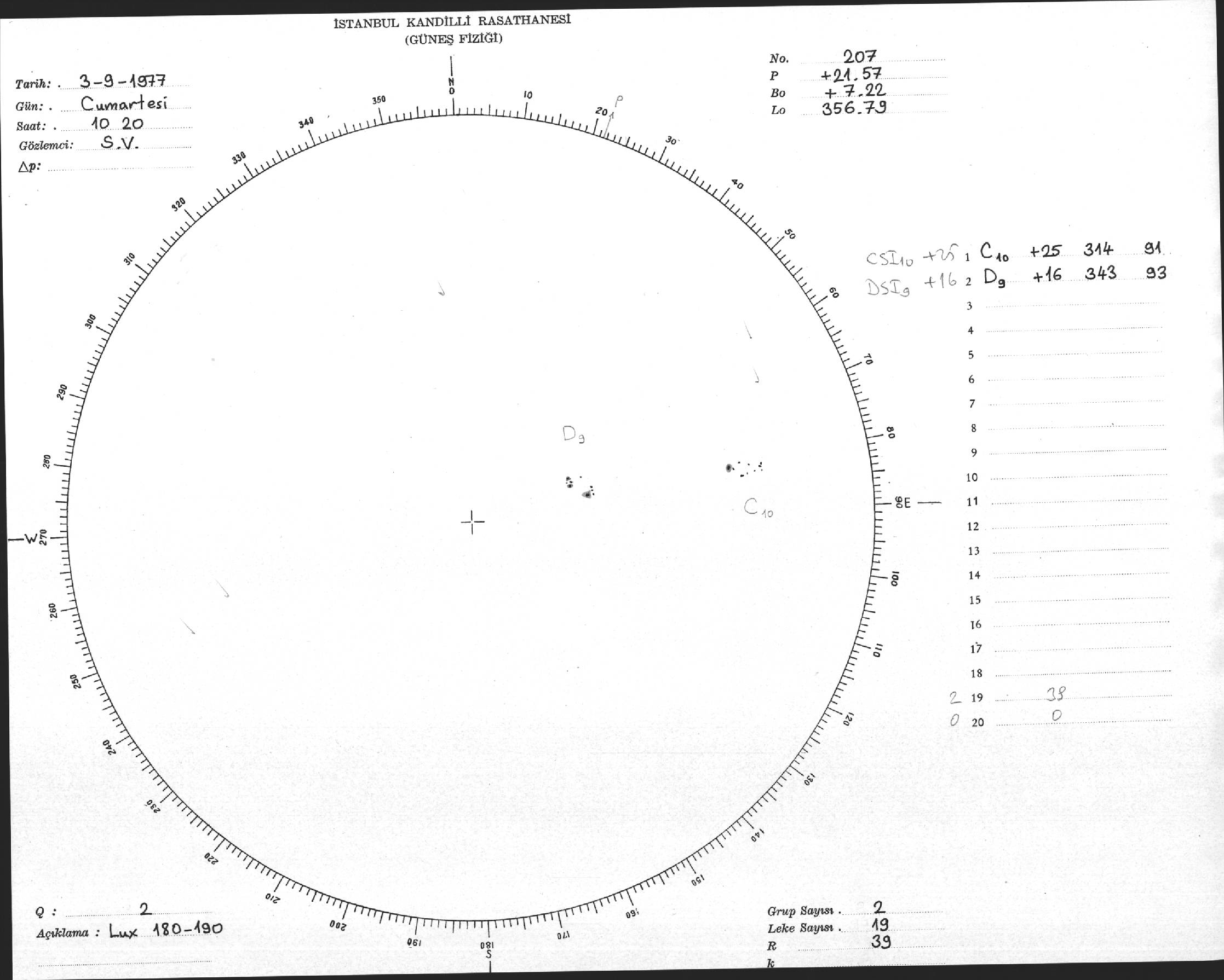 Güneş Lekesi Çizimi - 03.09.1977