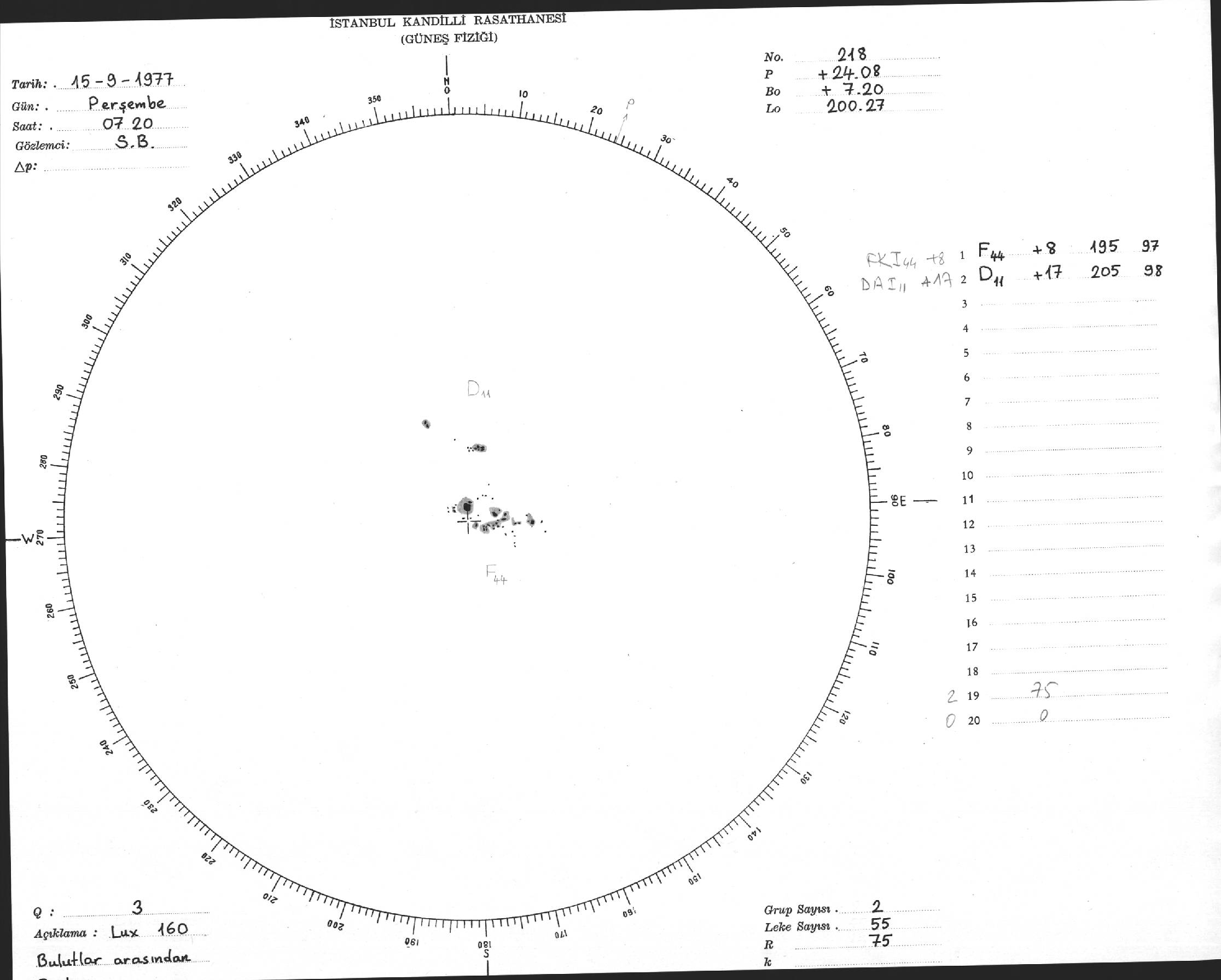 Güneş Lekesi Çizimi - 15.09.1977