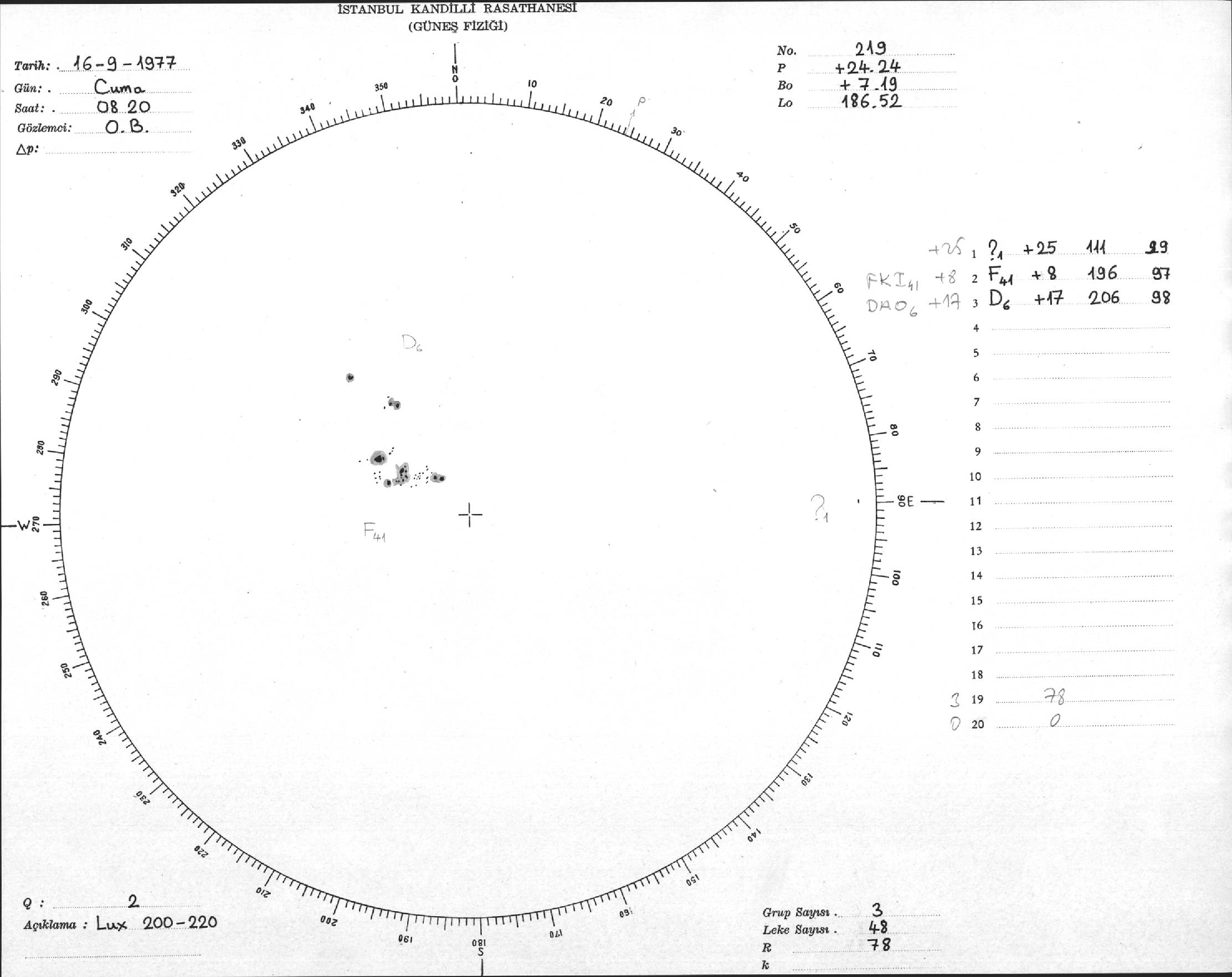 Güneş Lekesi Çizimi - 16.09.1977