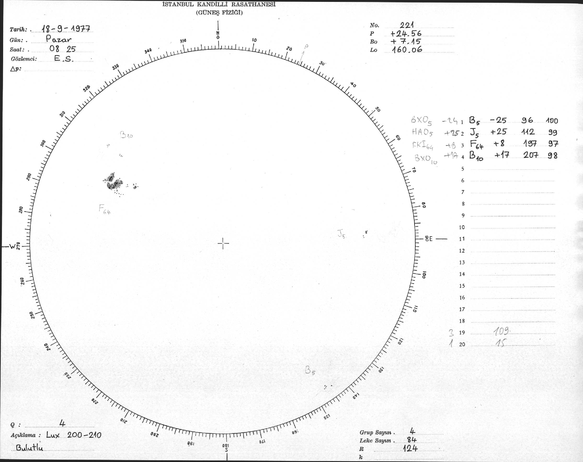 Güneş Lekesi Çizimi - 18.09.1977