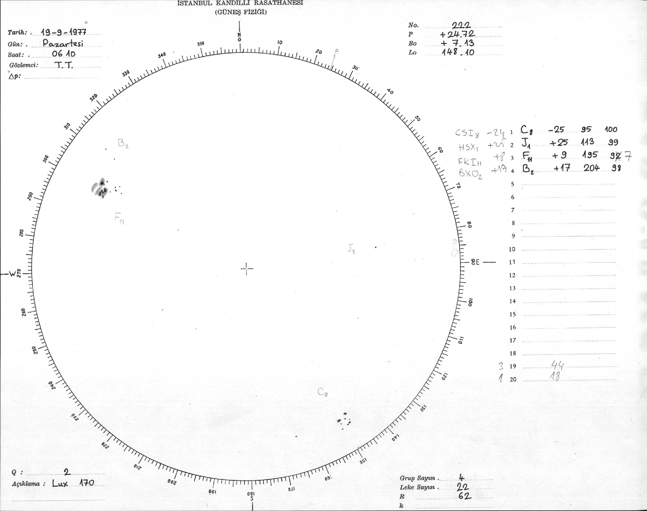Güneş Lekesi Çizimi - 19.09.1977