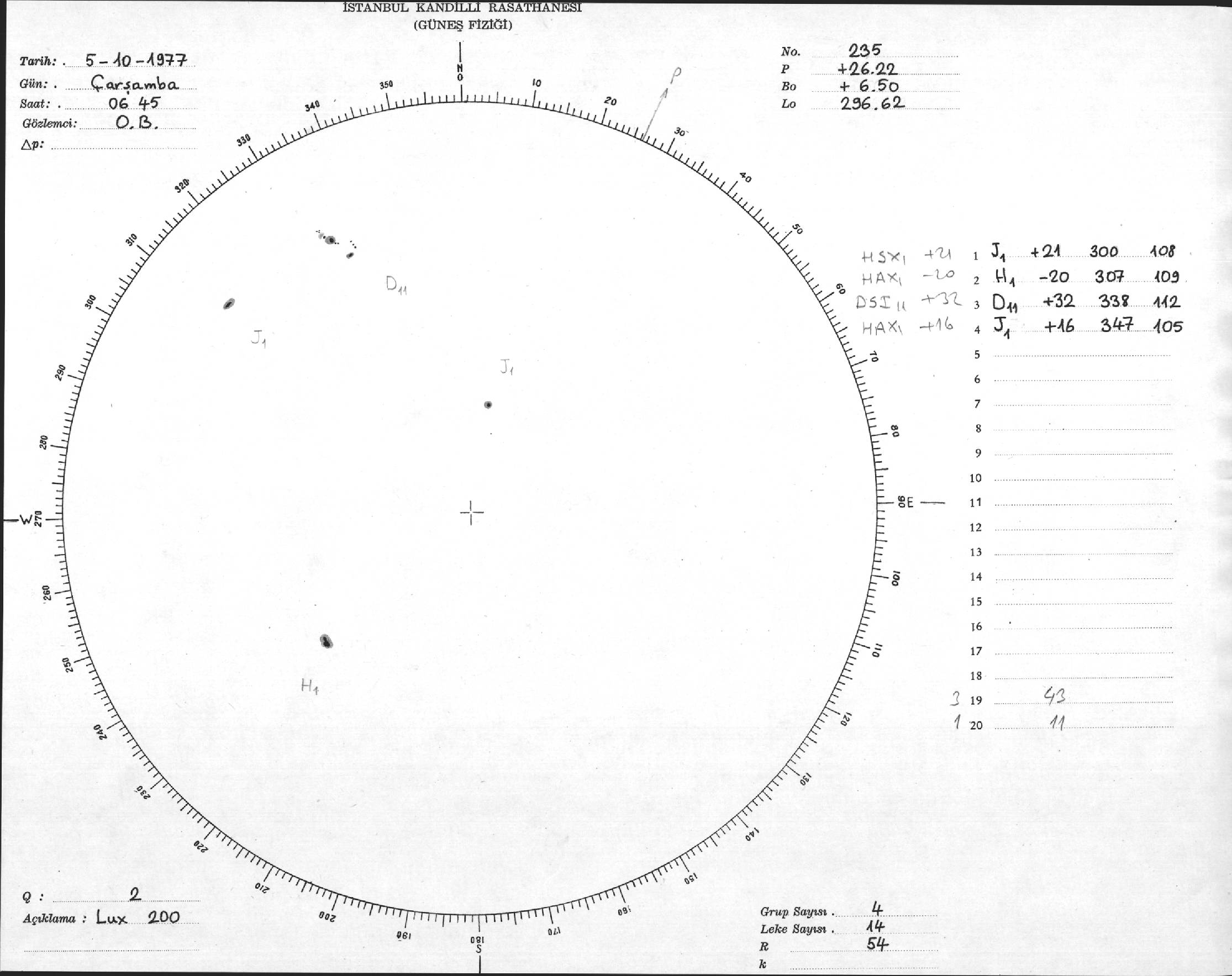 Güneş Lekesi Çizimi - 05.10.1977