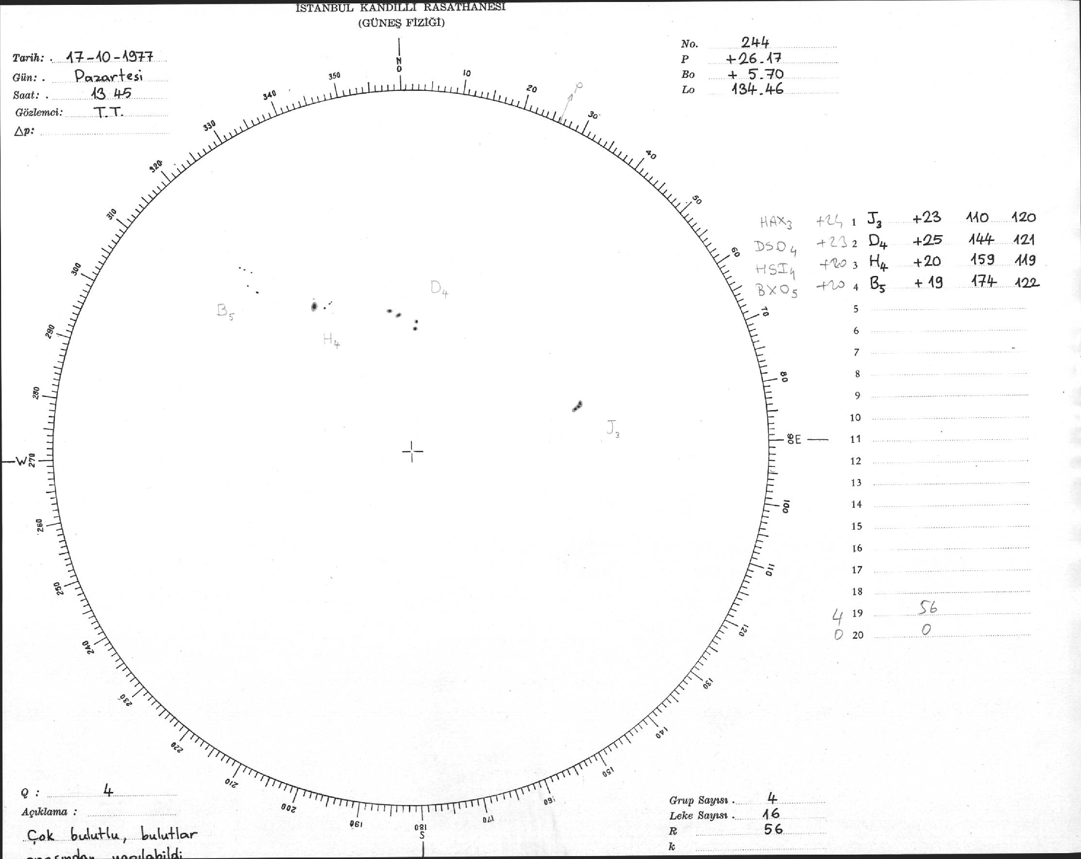 Güneş Lekesi Çizimi - 17.10.1977