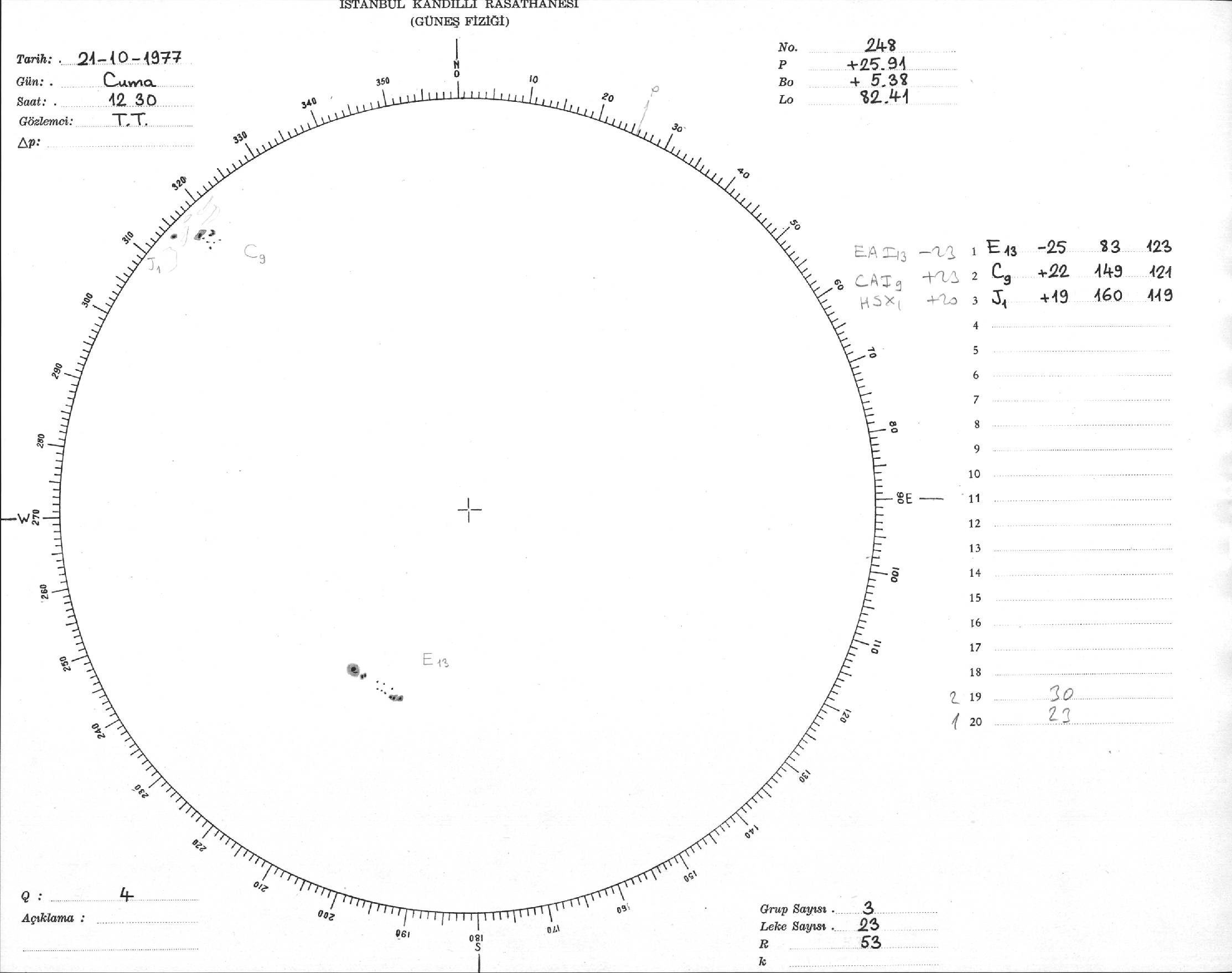 Güneş Lekesi Çizimi - 21.10.1977