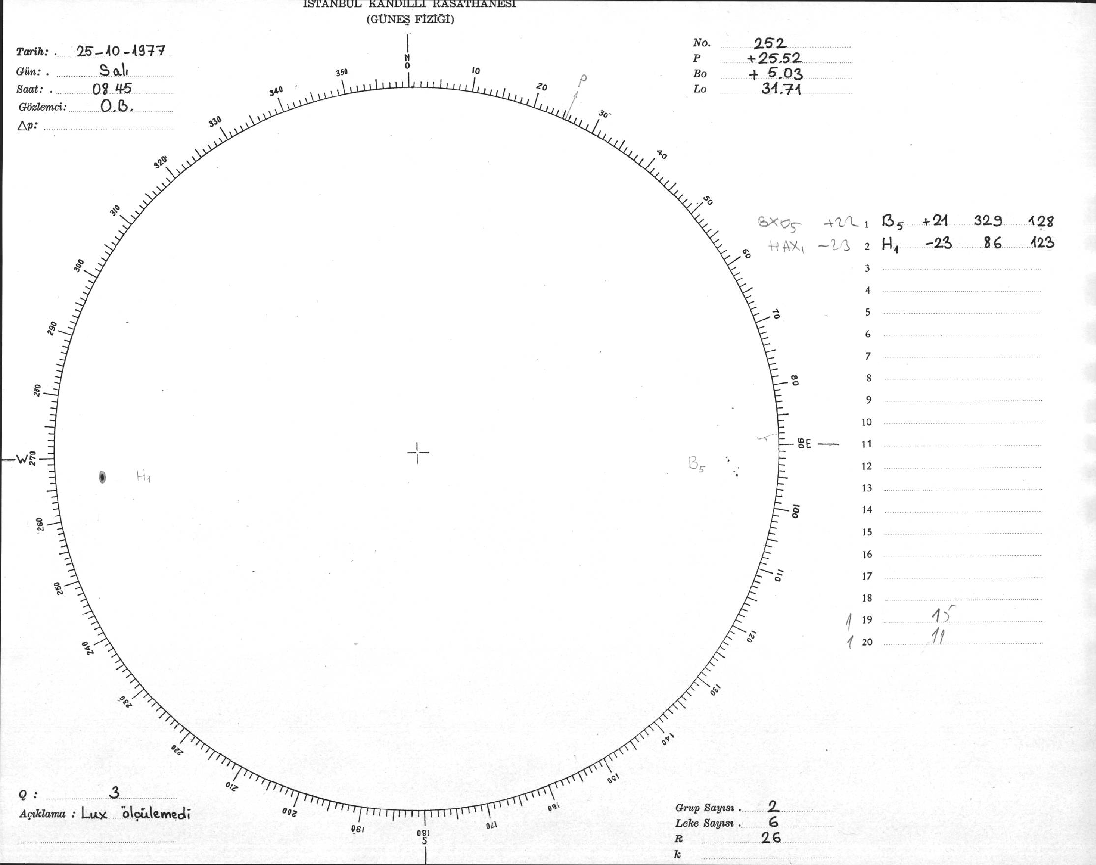 Güneş Lekesi Çizimi - 25.10.1977