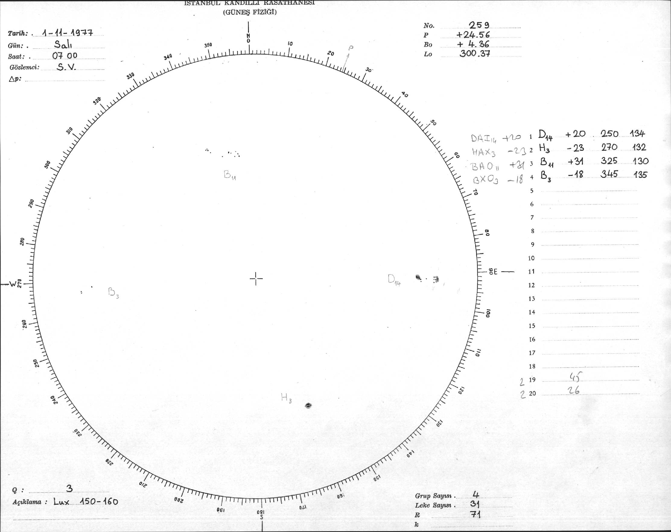 Güneş Lekesi Çizimi - 01.11.1977
