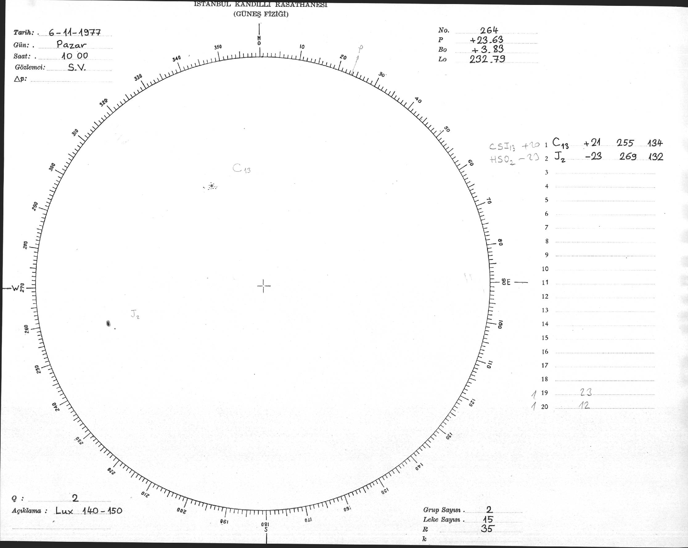 Güneş Lekesi Çizimi - 06.11.1977