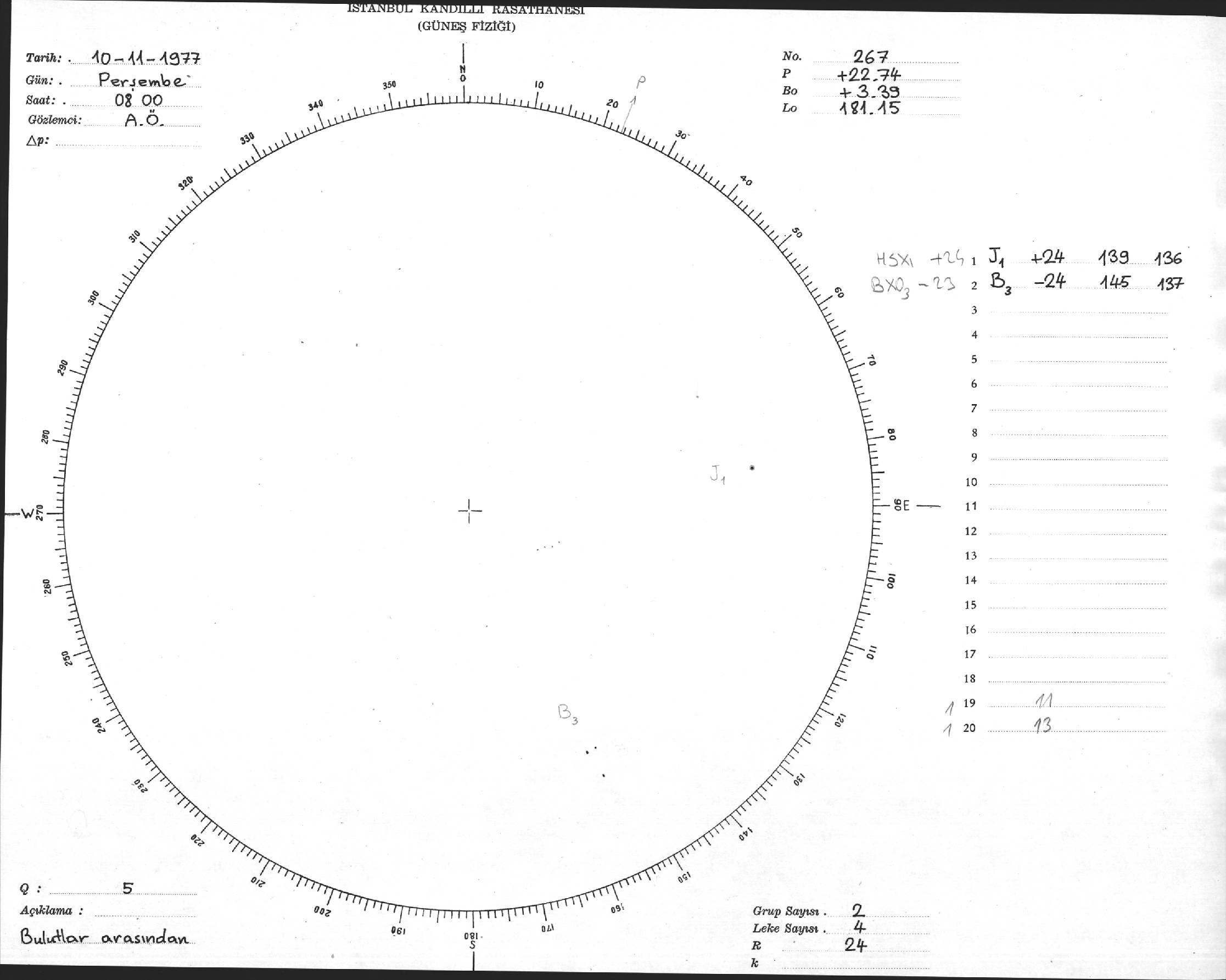 Güneş Lekesi Çizimi - 10.11.1977