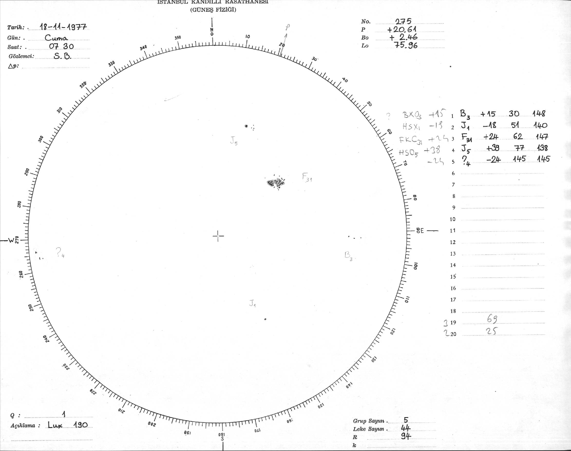 Güneş Lekesi Çizimi - 18.11.1977