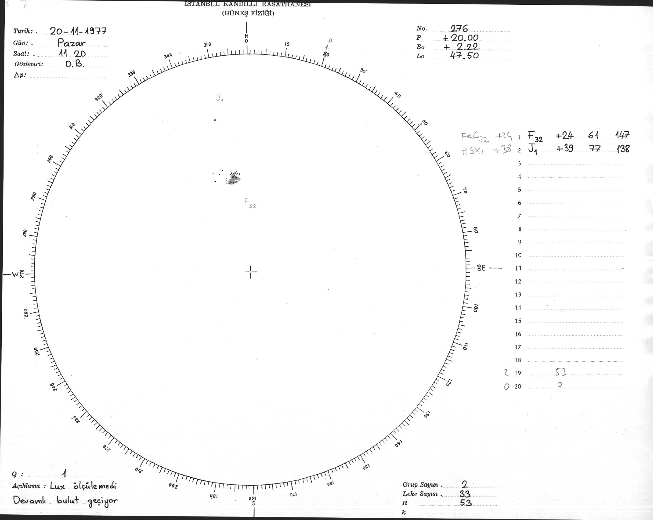 Güneş Lekesi Çizimi - 20.11.1977