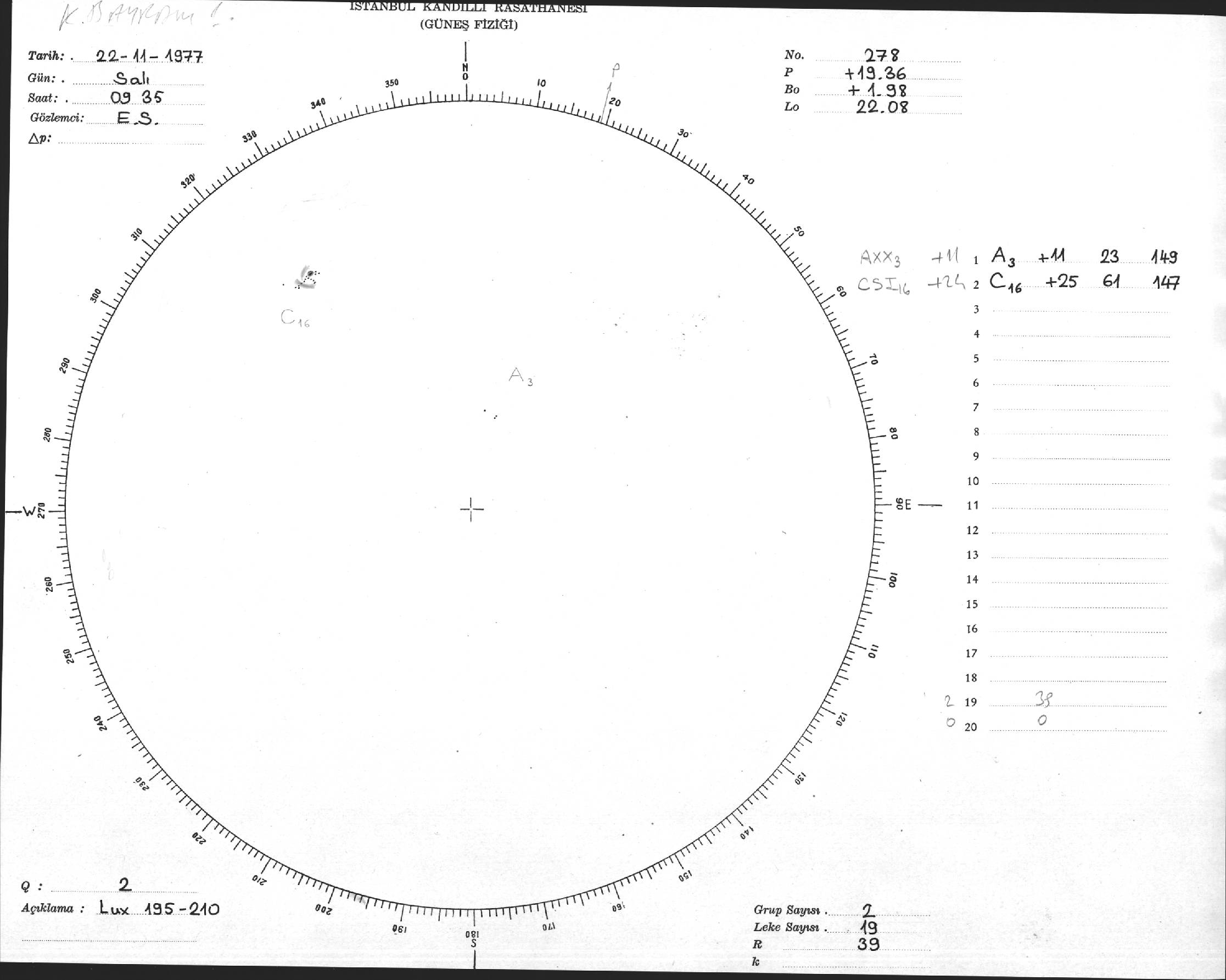 Güneş Lekesi Çizimi - 22.11.1977