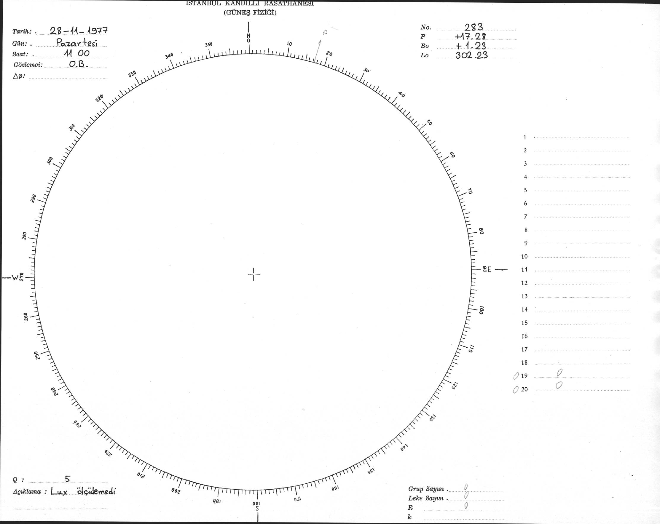 Güneş Lekesi Çizimi - 28.11.1977