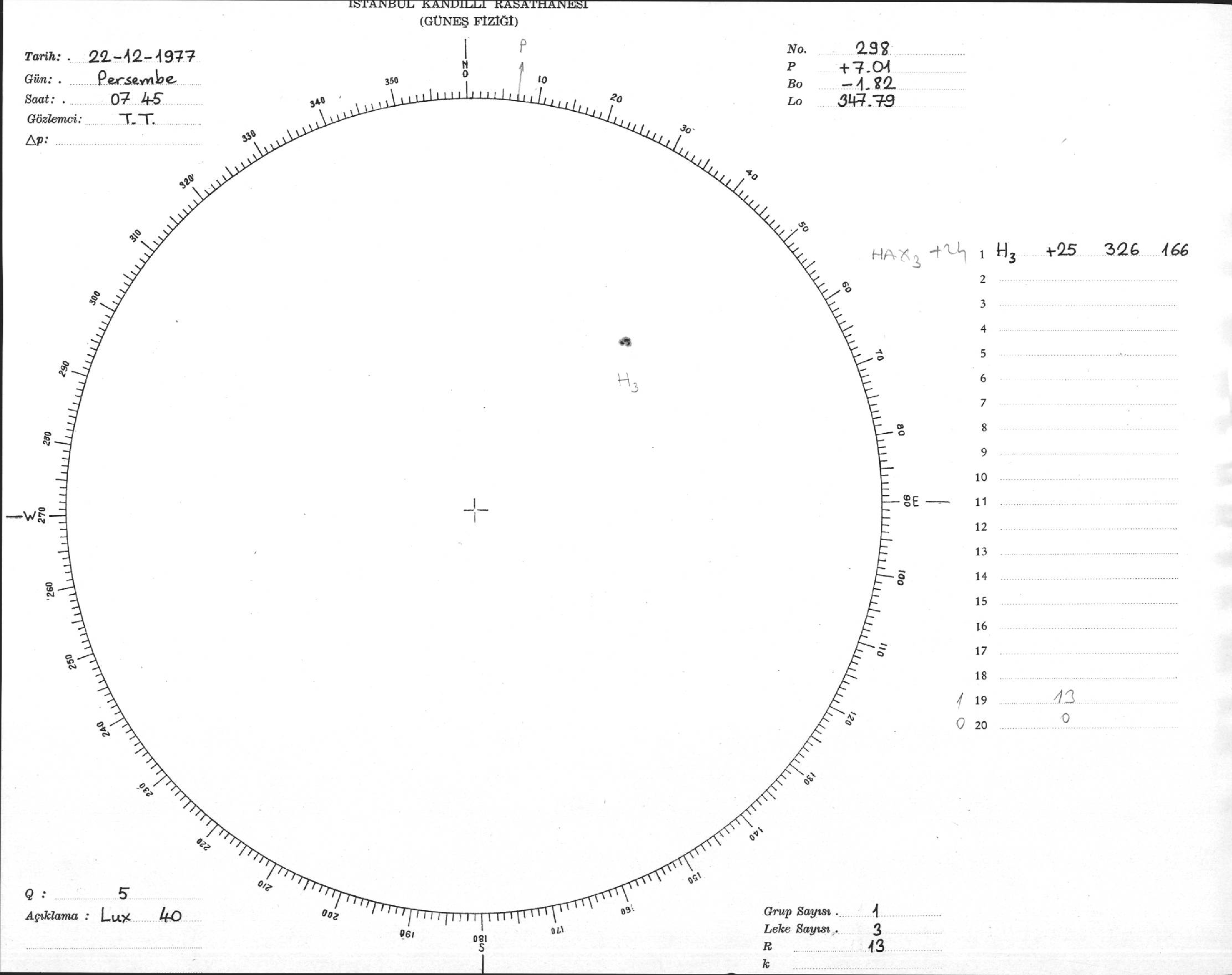 Güneş Lekesi Çizimi - 22.12.1977