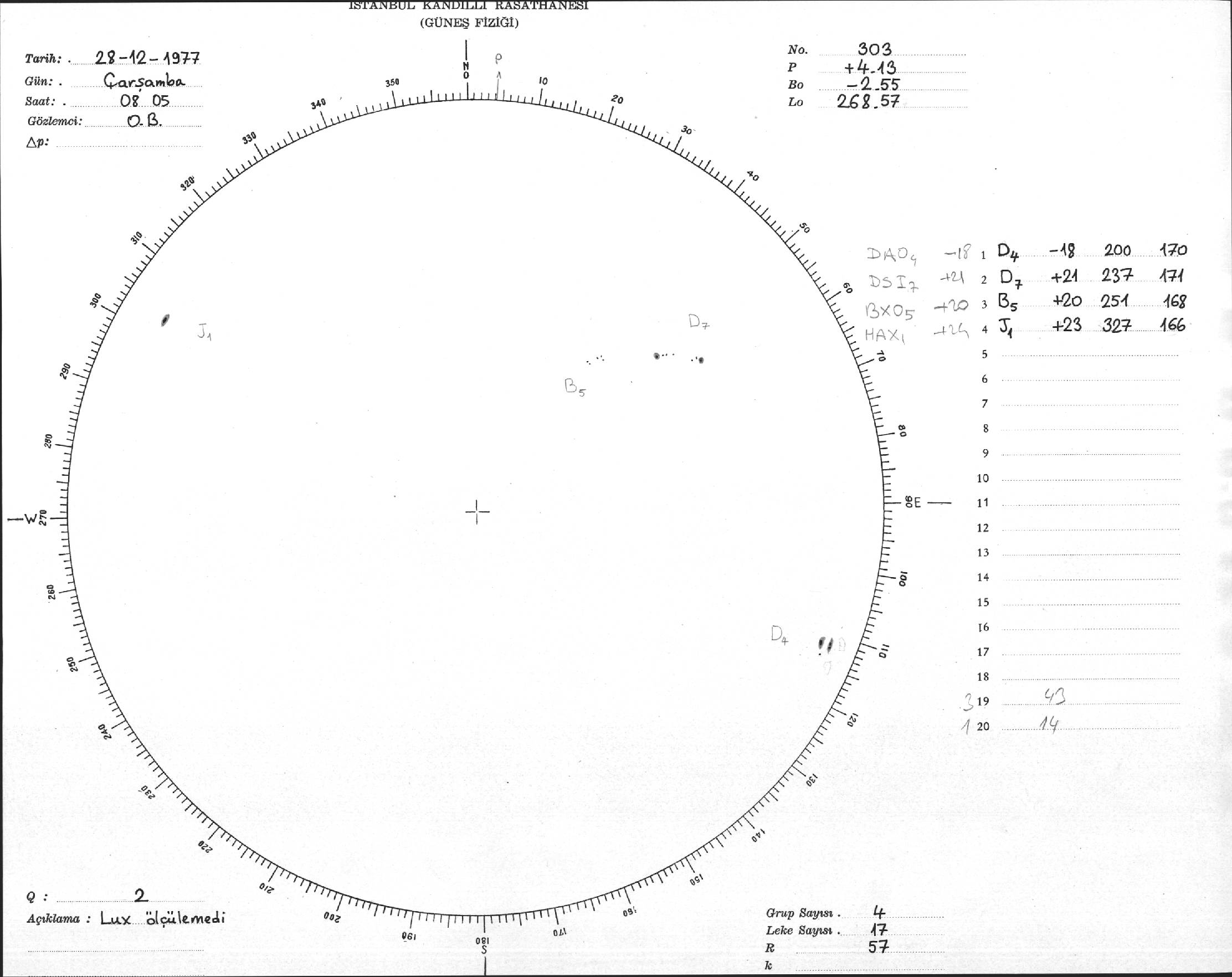 Güneş Lekesi Çizimi - 28.12.1977