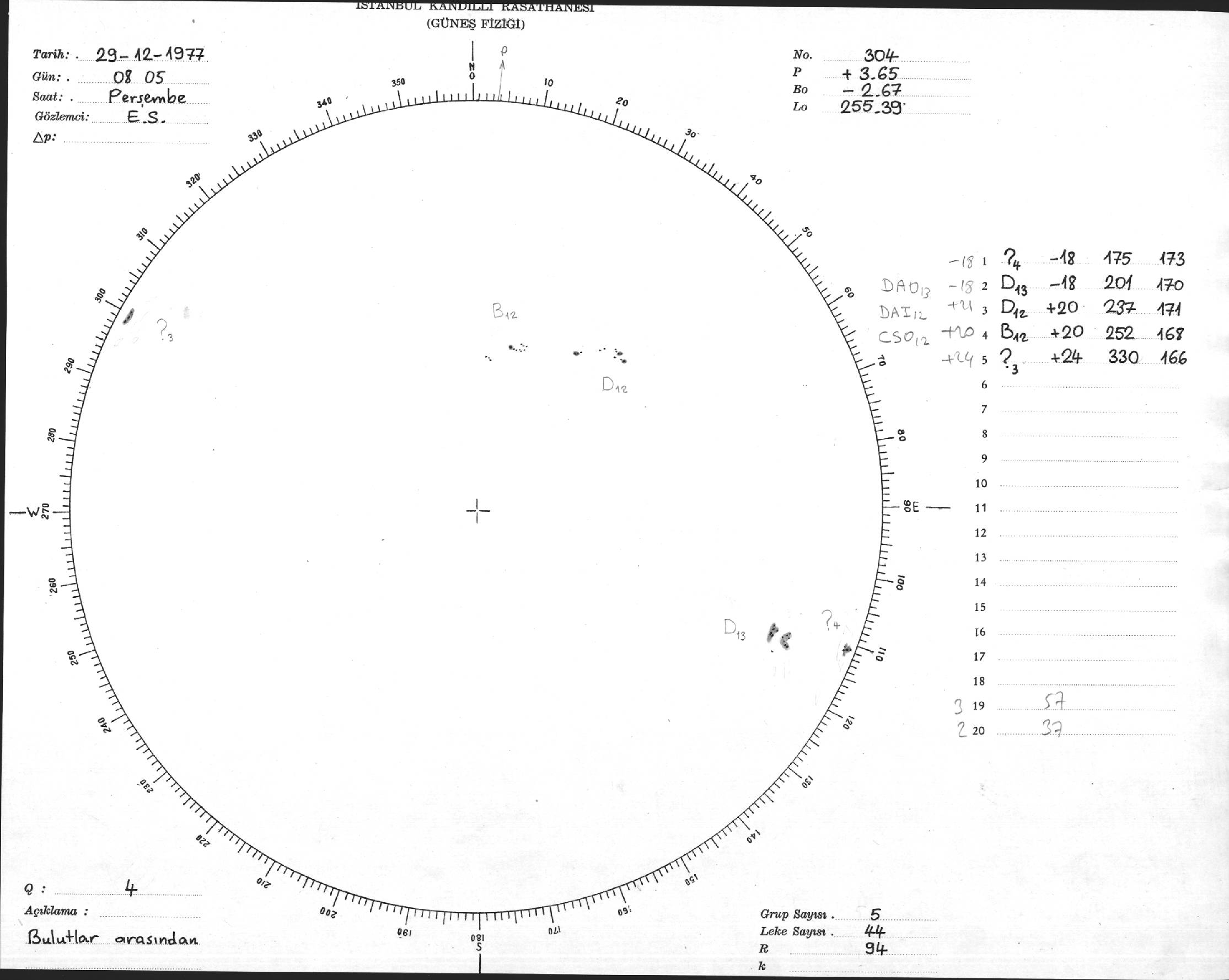 Güneş Lekesi Çizimi - 29.12.1977