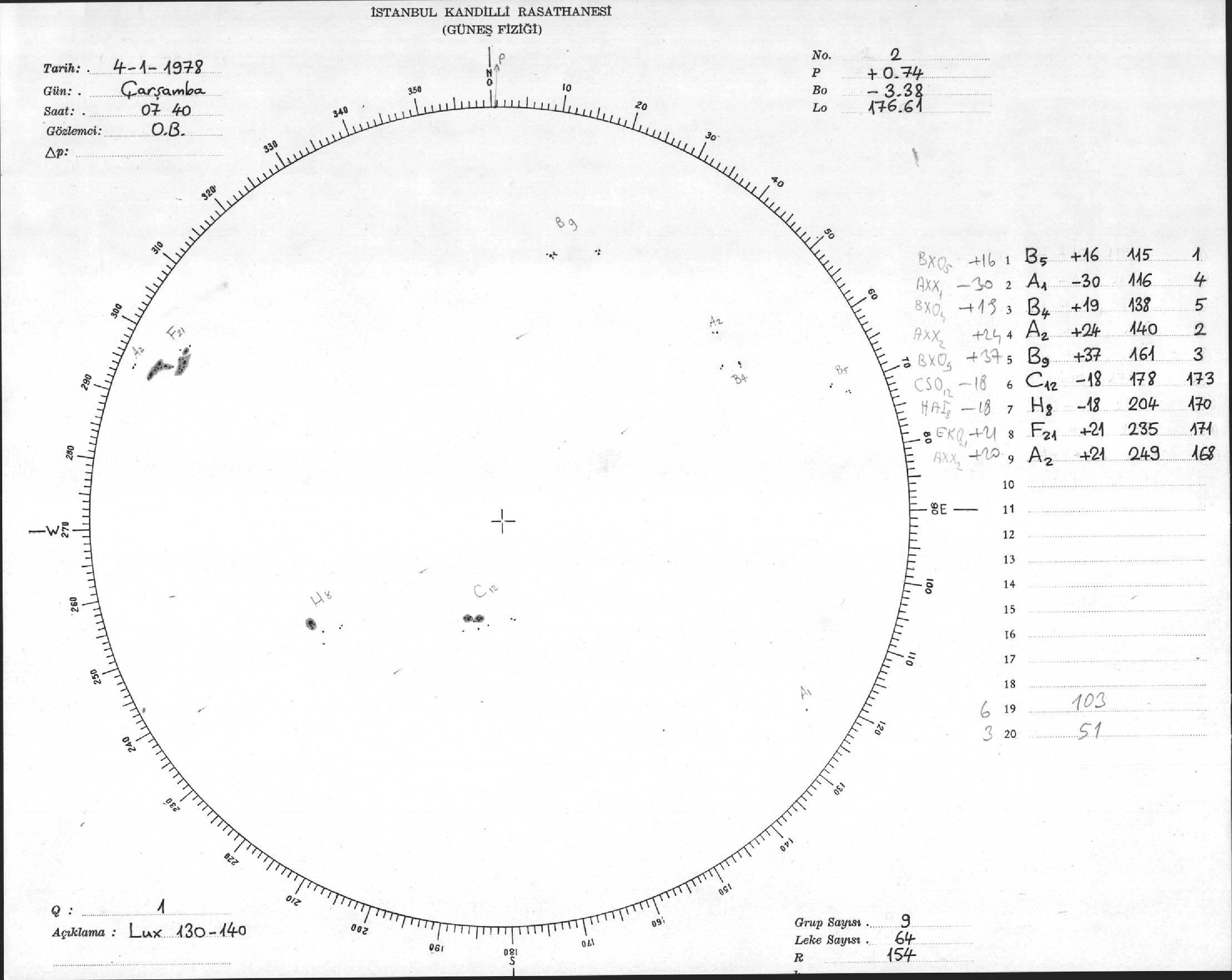 Güneş Lekesi Çizimi - 04.01.1978