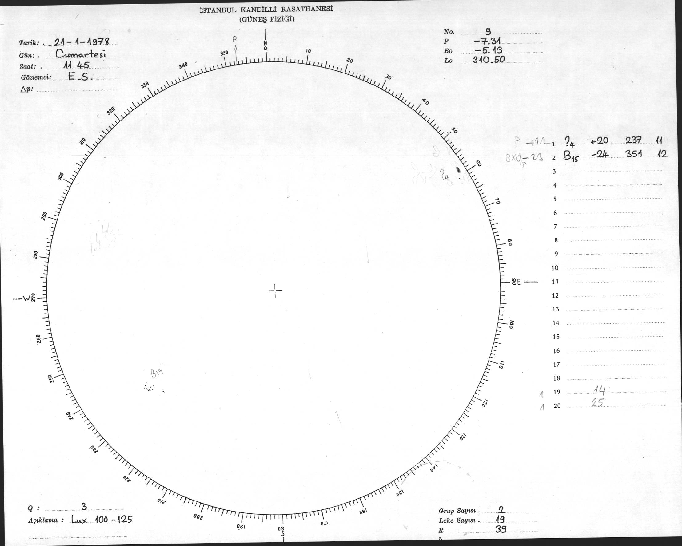 Güneş Lekesi Çizimi - 21.01.1978