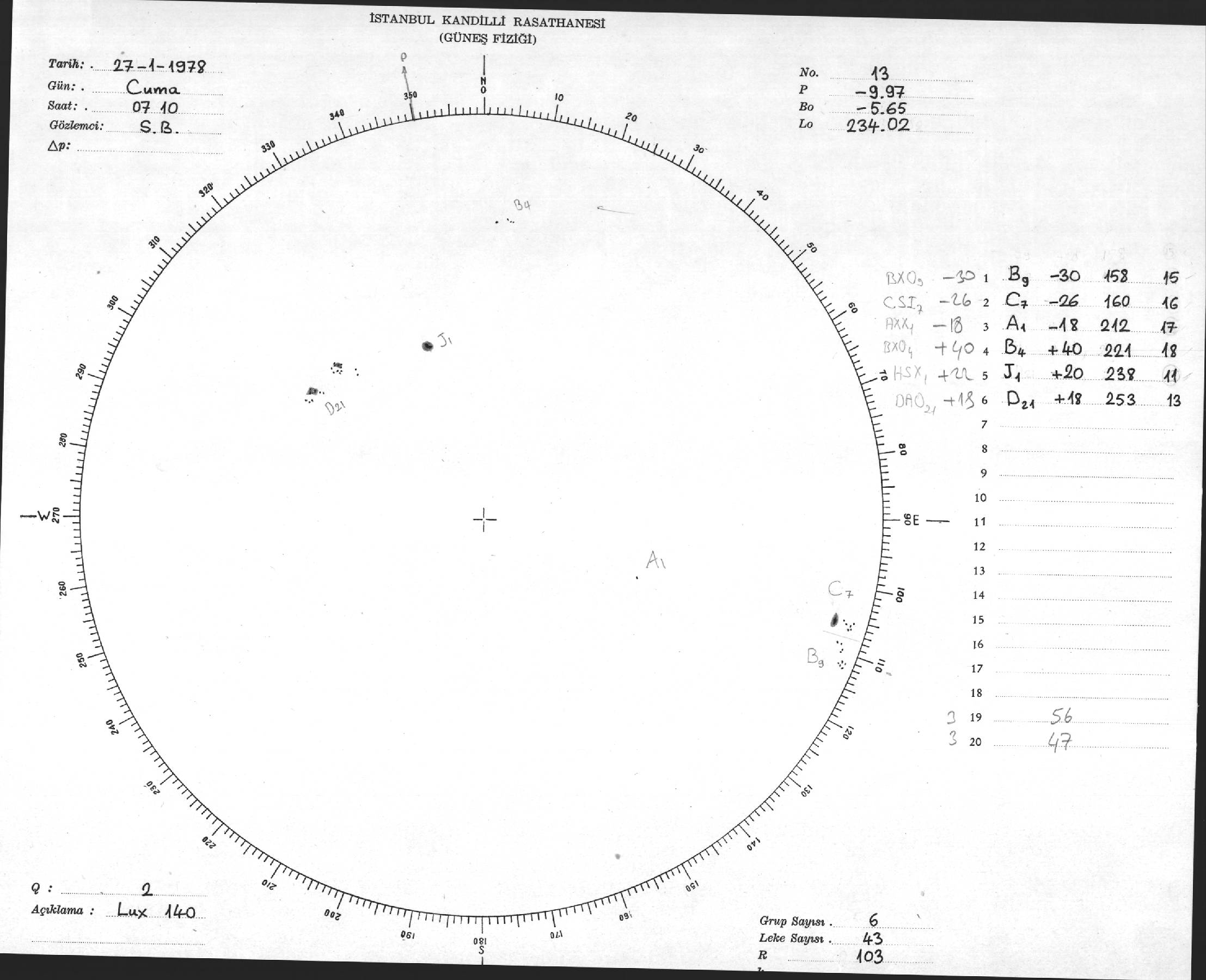 Güneş Lekesi Çizimi - 27.01.1978