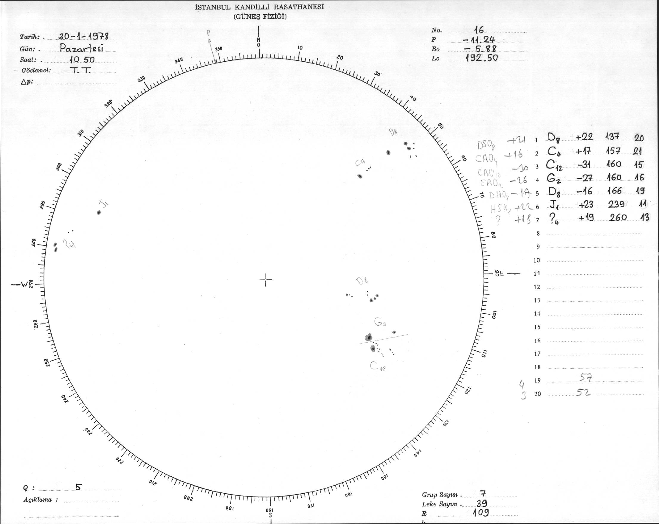 Güneş Lekesi Çizimi - 30.01.1978
