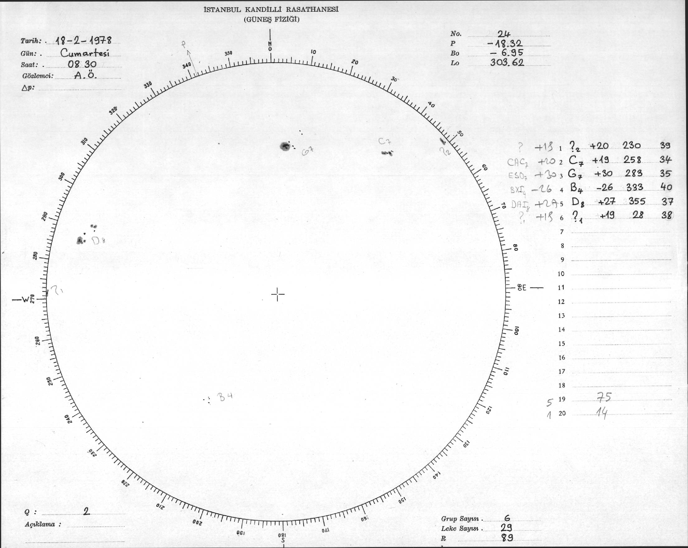Güneş Lekesi Çizimi - 18.02.1978