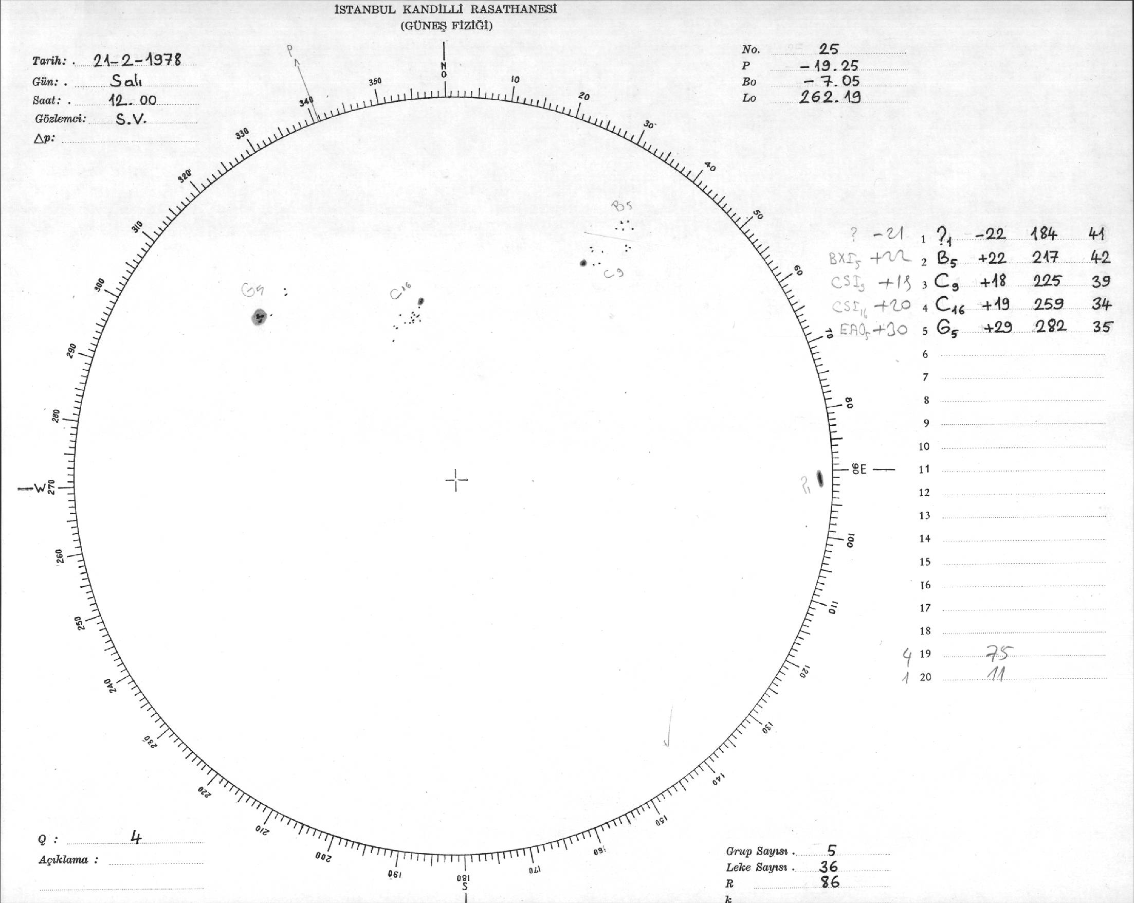 Güneş Lekesi Çizimi - 21.02.1978