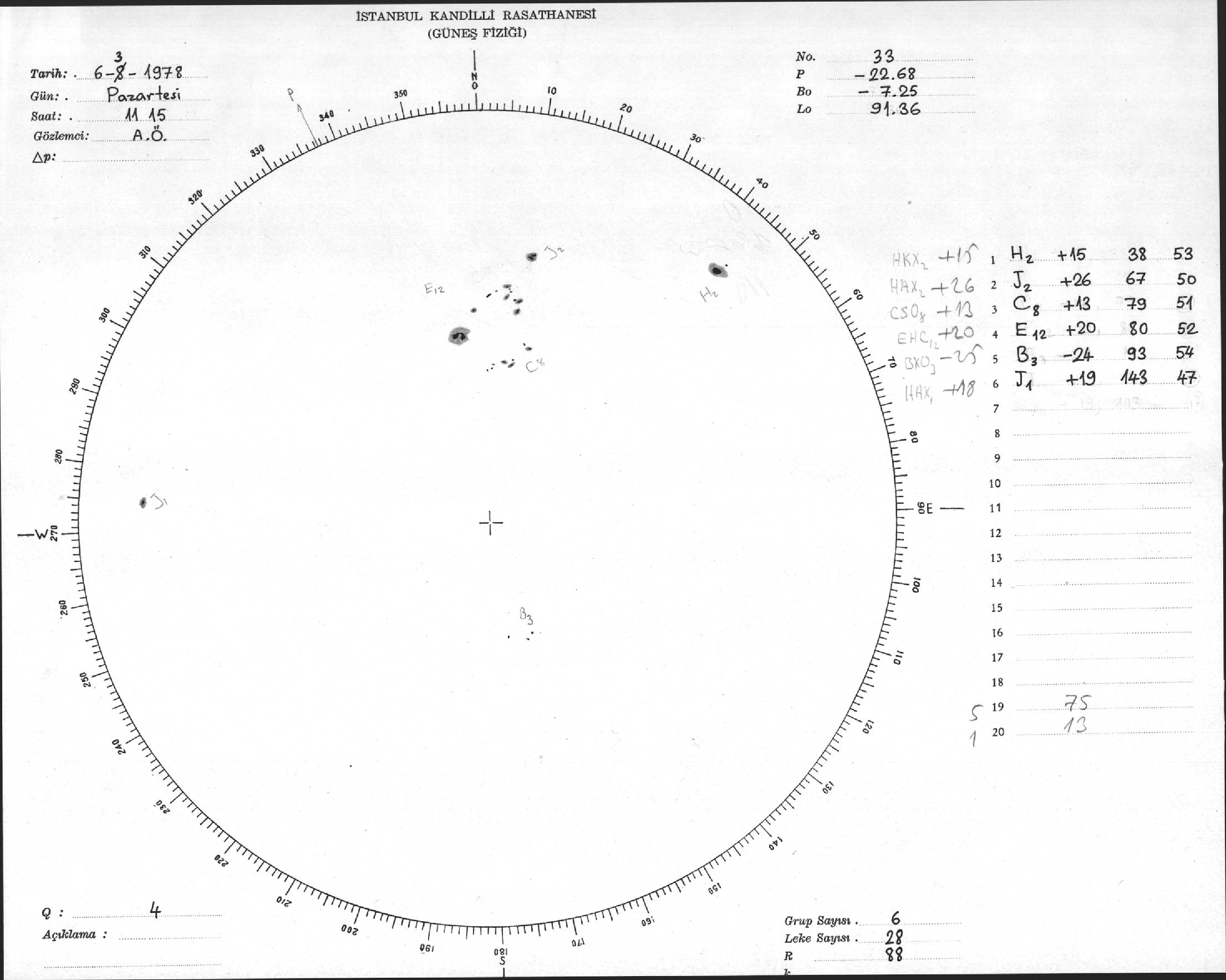 Güneş Lekesi Çizimi - 06.03.1978