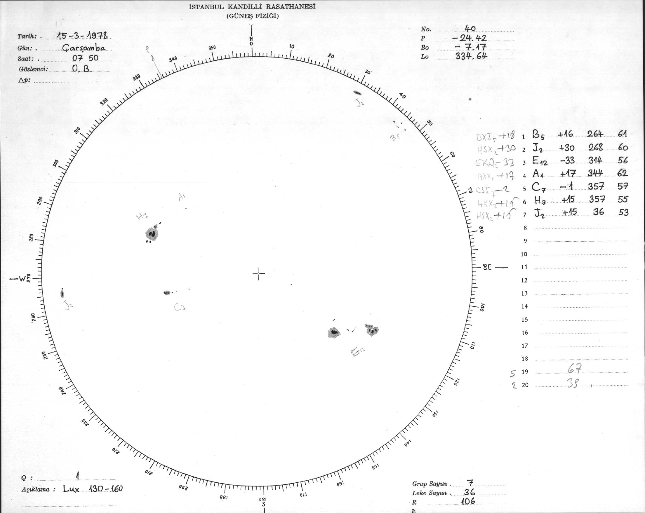Güneş Lekesi Çizimi - 15.03.1978