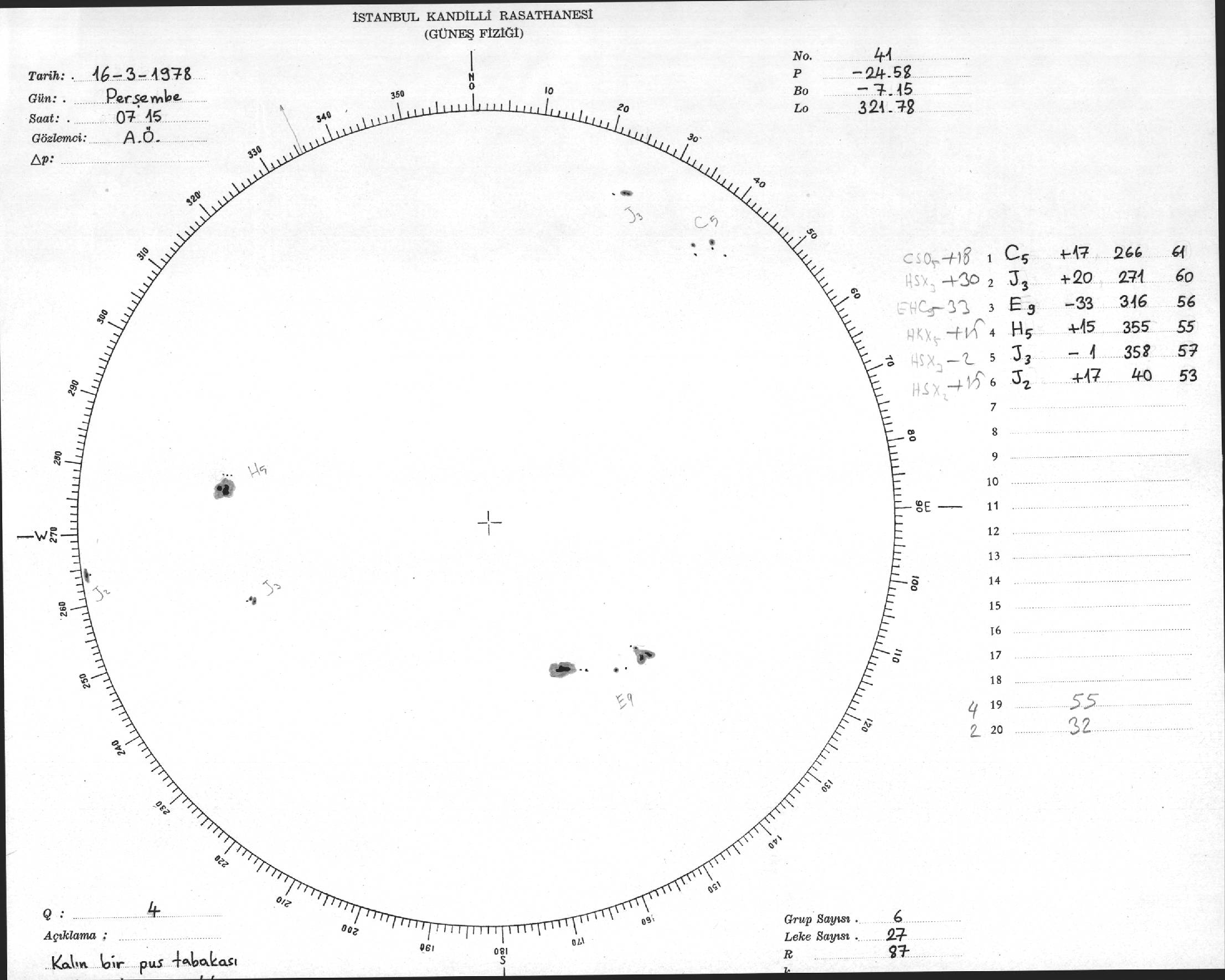 Güneş Lekesi Çizimi - 16.03.1978