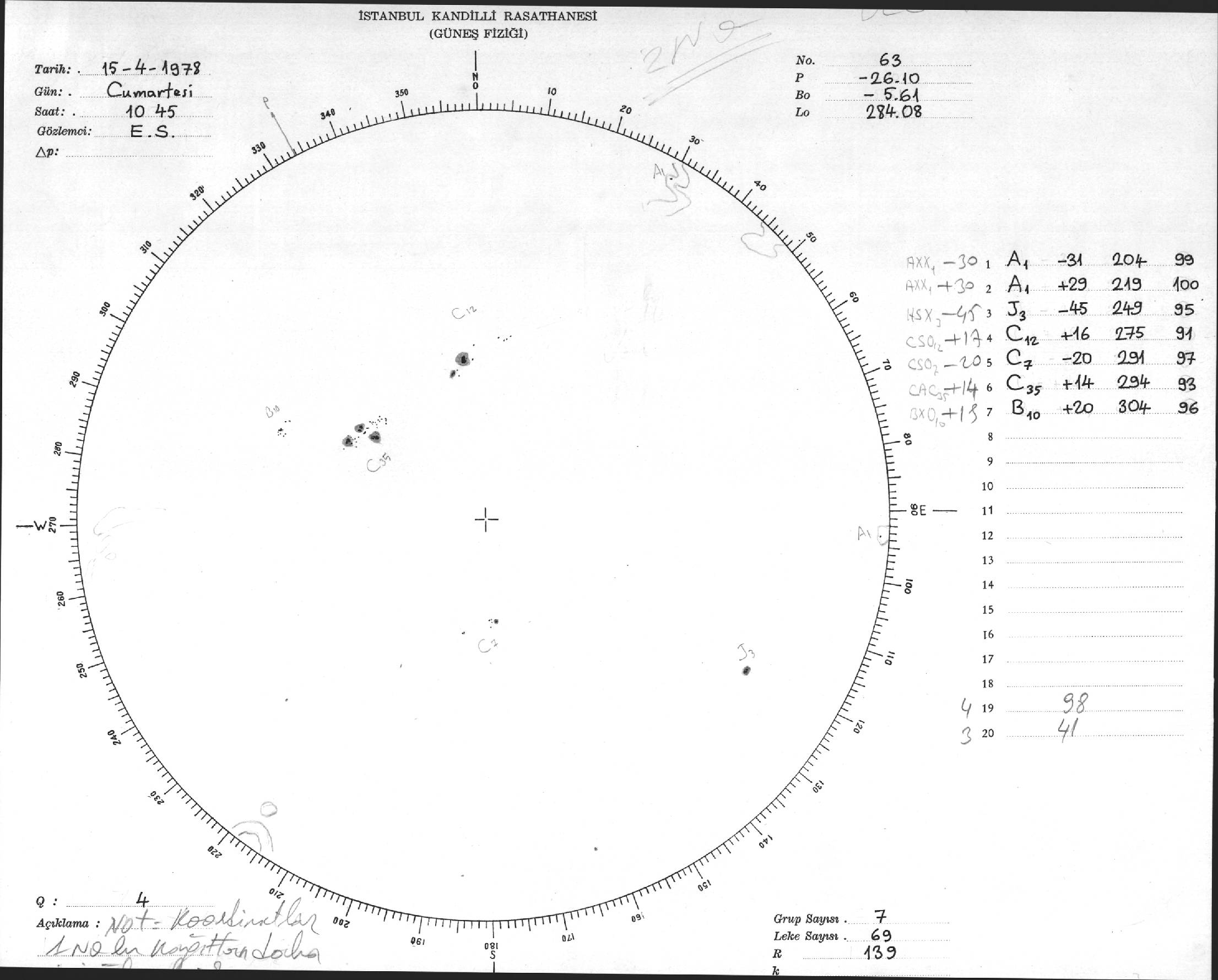 Güneş Lekesi Çizimi - 15.04.1978