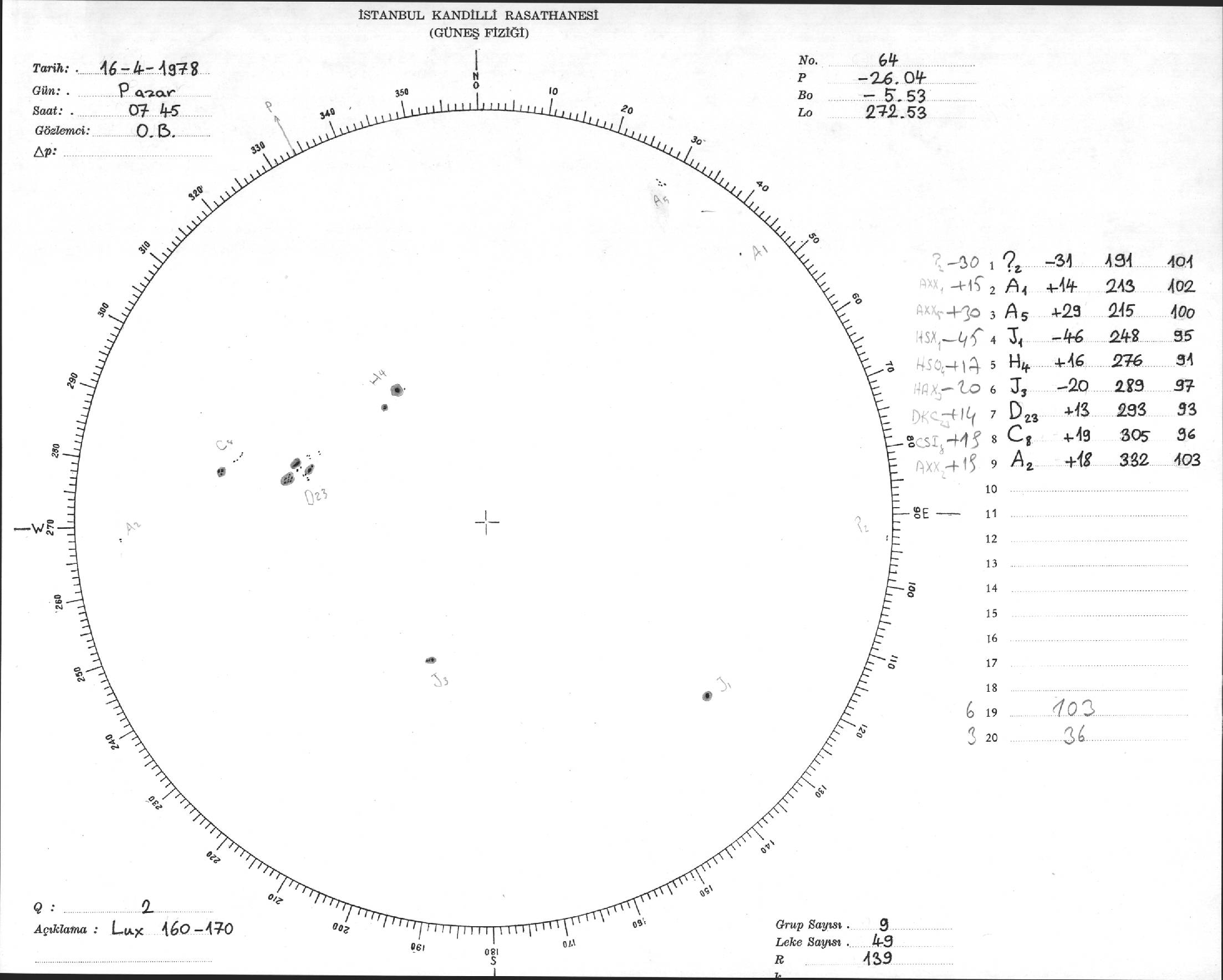Güneş Lekesi Çizimi - 16.04.1978