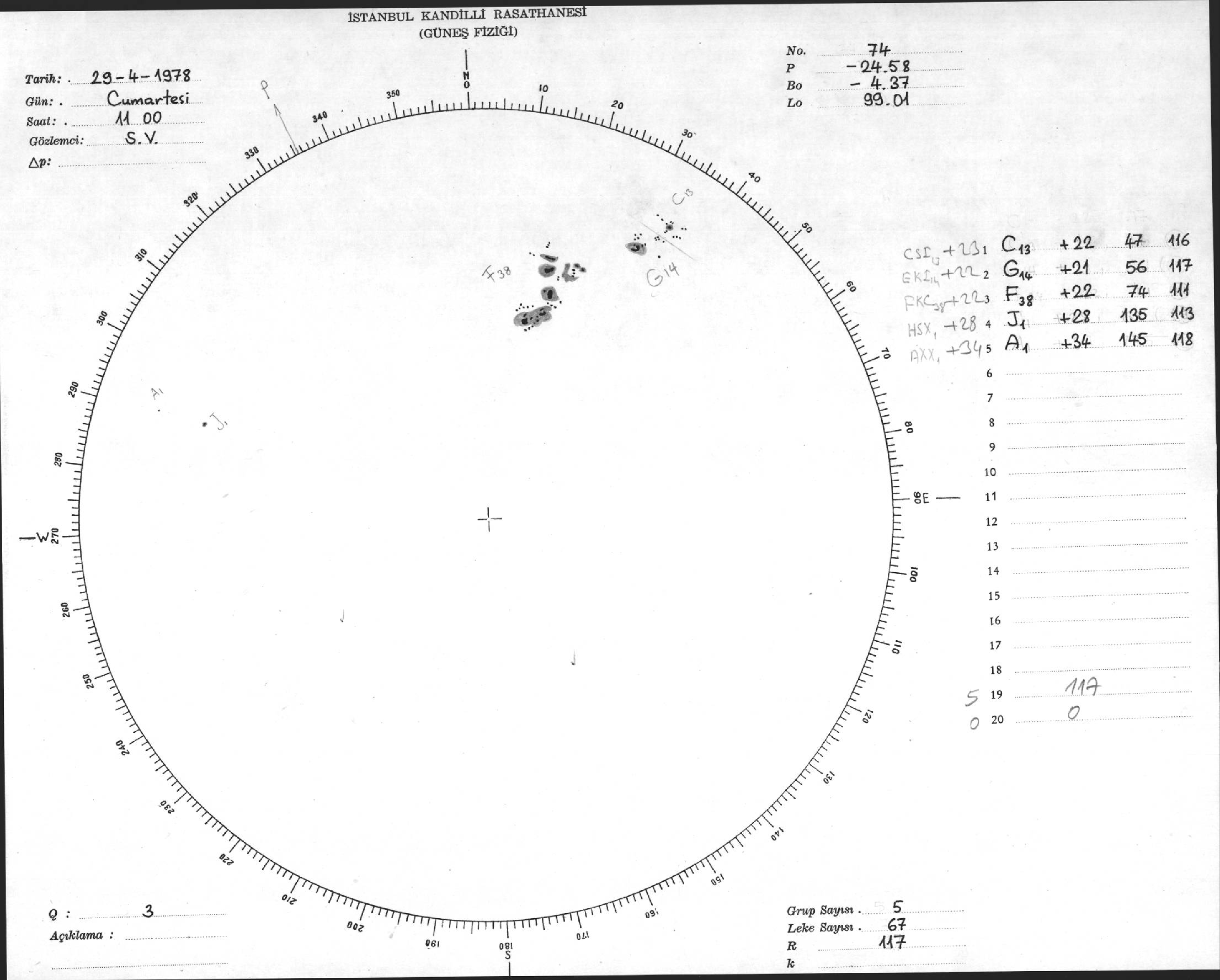 Güneş Lekesi Çizimi - 29.04.1978
