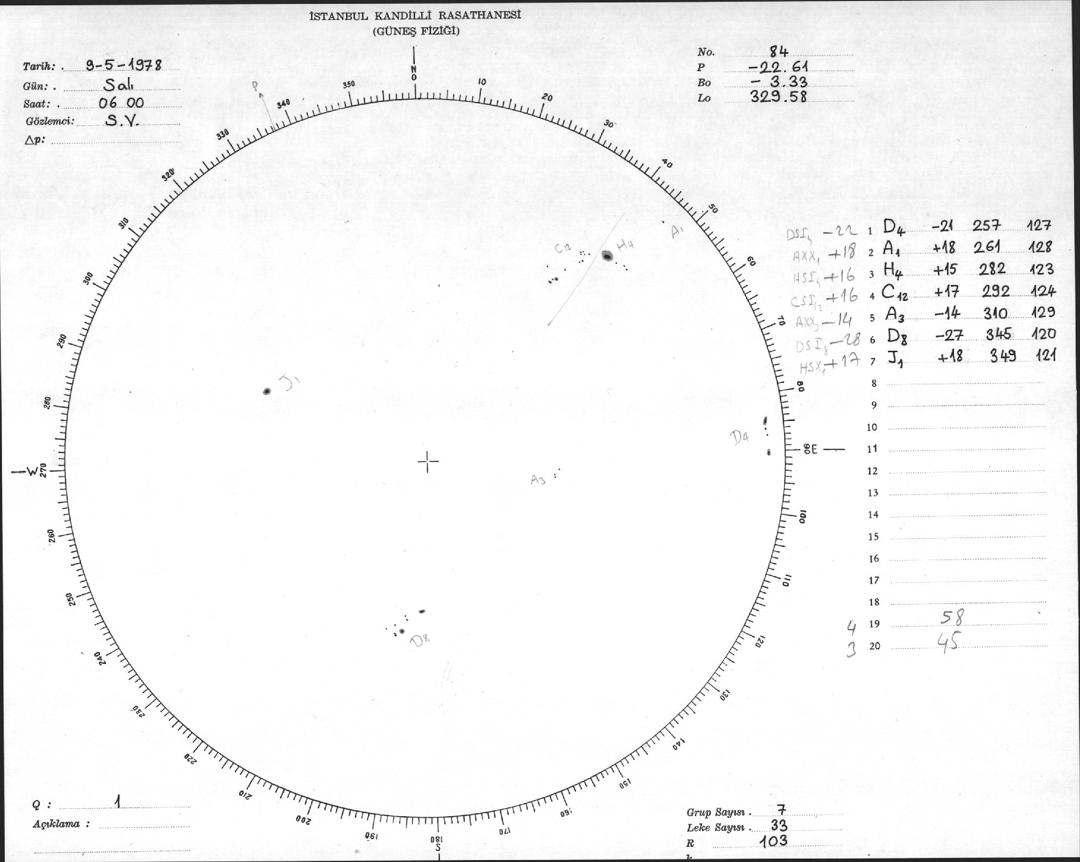 Güneş Lekesi Çizimi - 09.05.1978