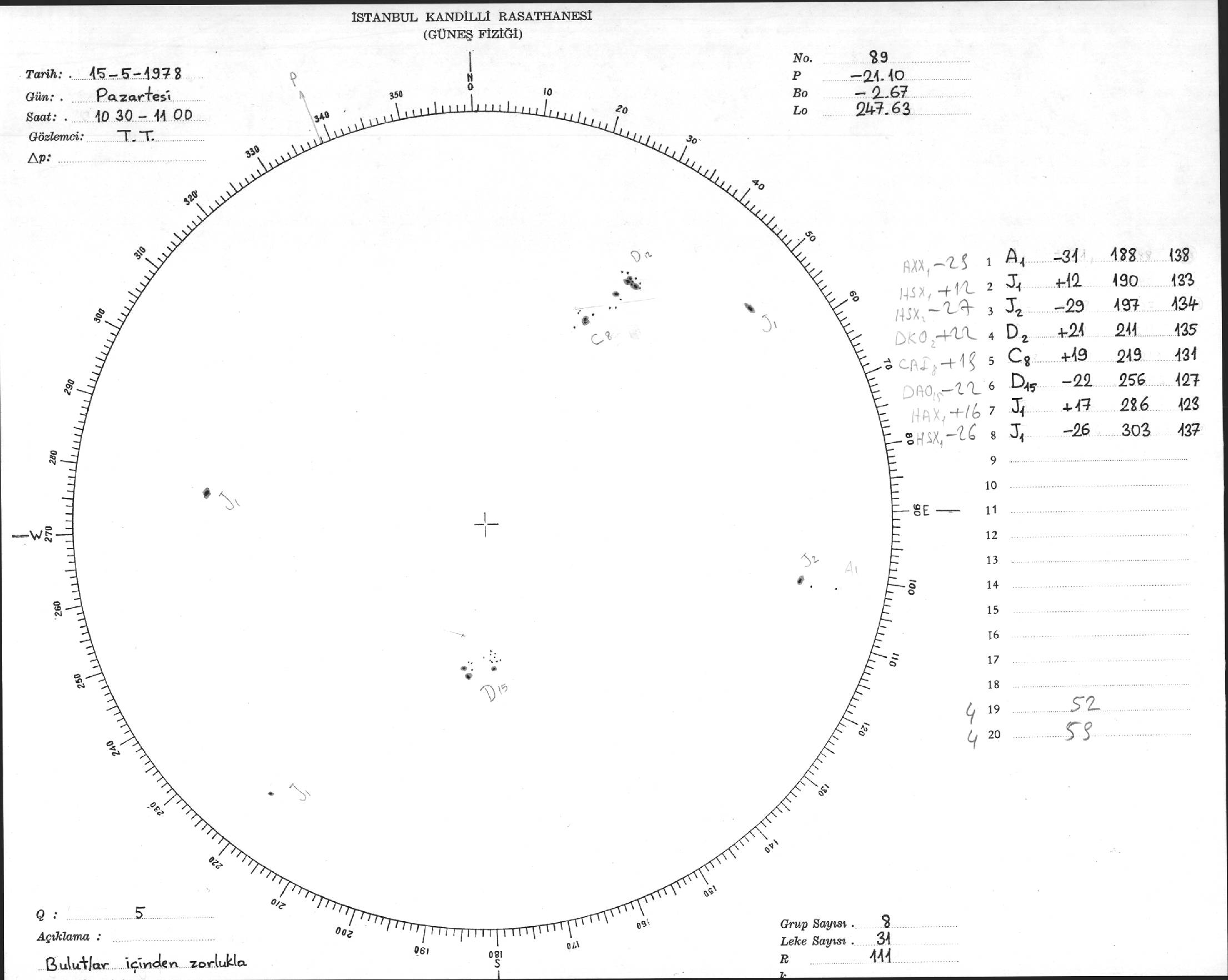 Güneş Lekesi Çizimi - 15.05.1978
