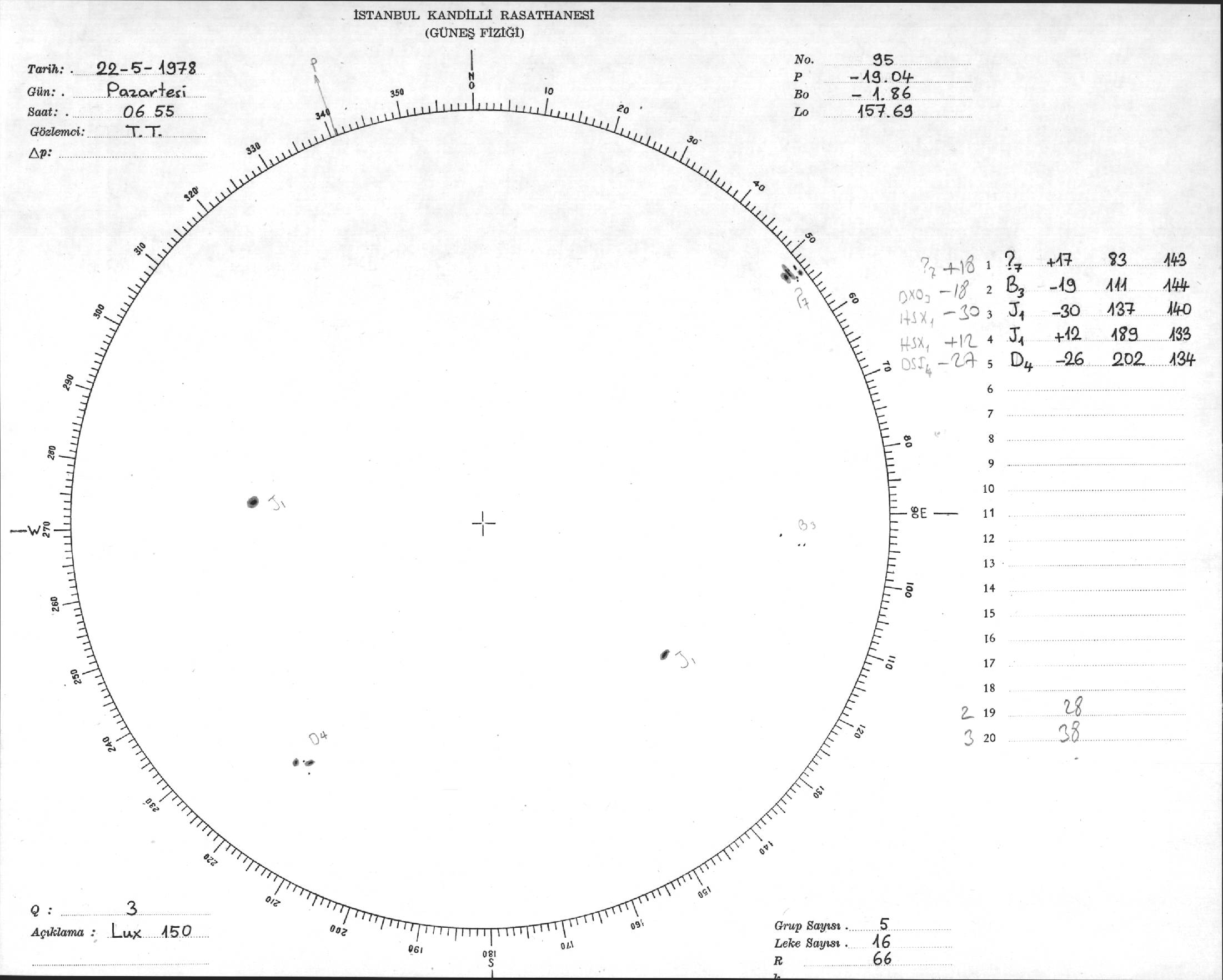 Güneş Lekesi Çizimi - 22.05.1978